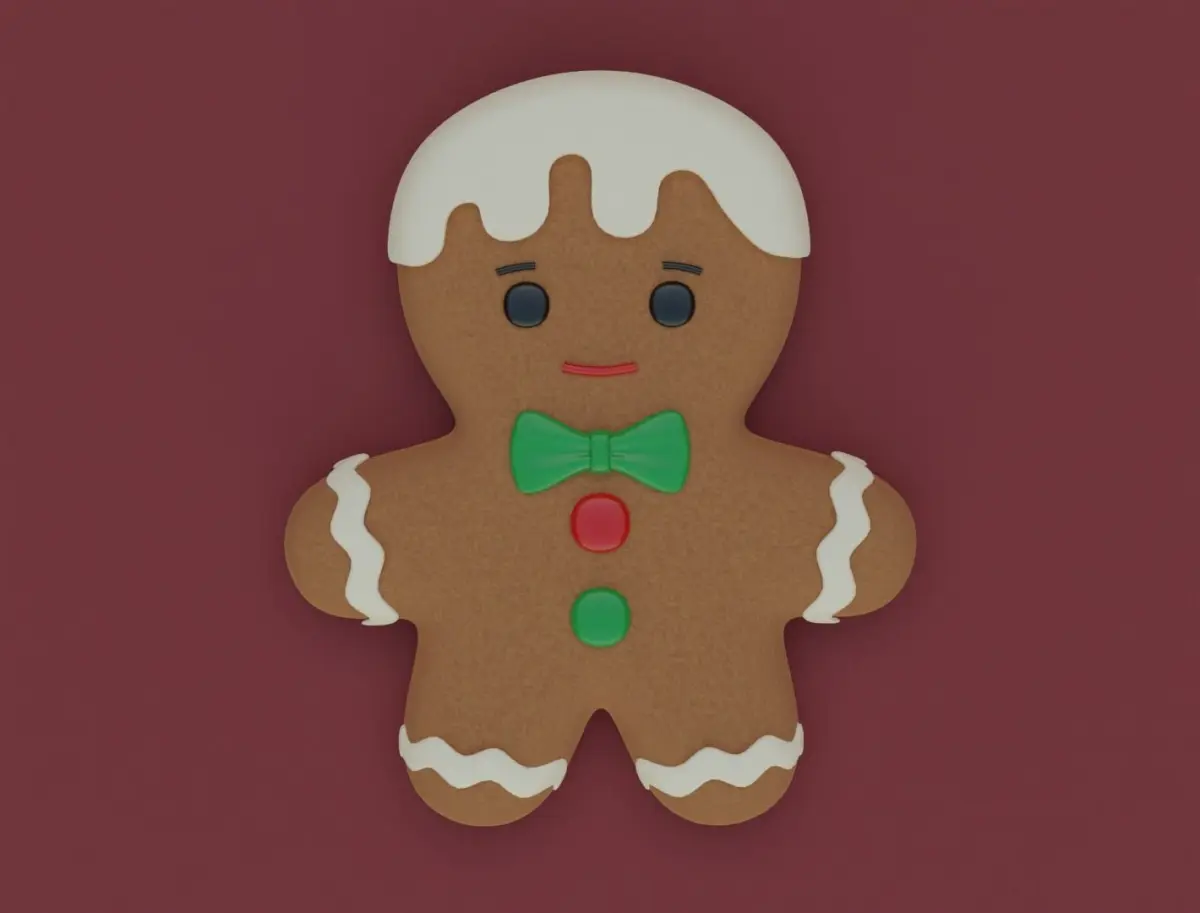 The content itself is a high-poly 3D printable gingerbread man model suitable for the Christmas theme, which is intended for projects, games, animations, advertising and other ideas of yours. Ready for 3D printing and makes a good cake gift.