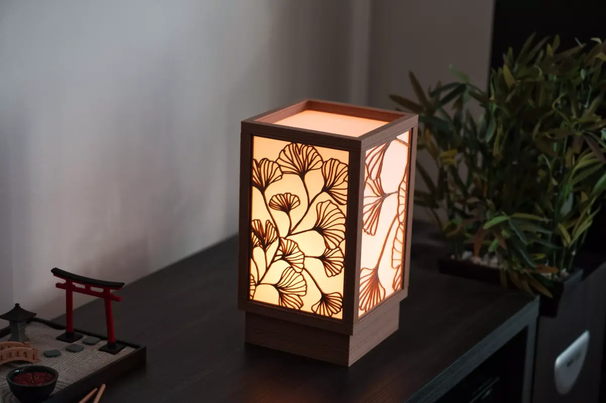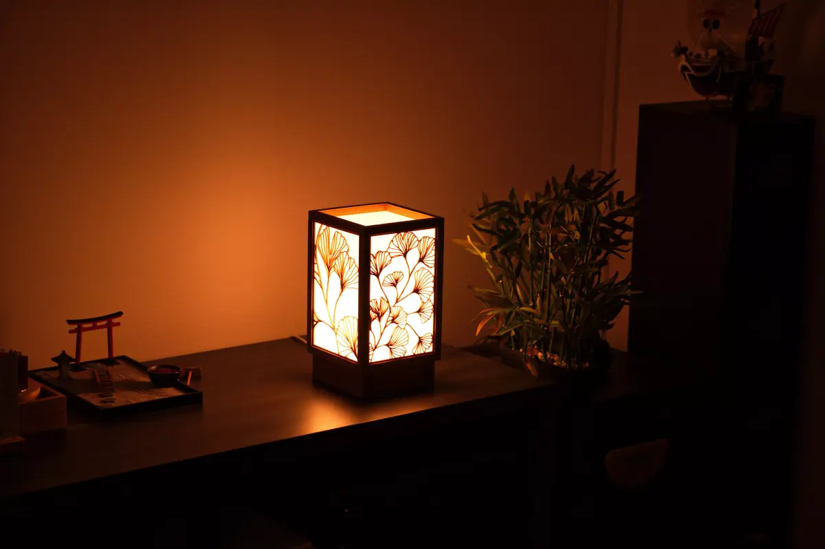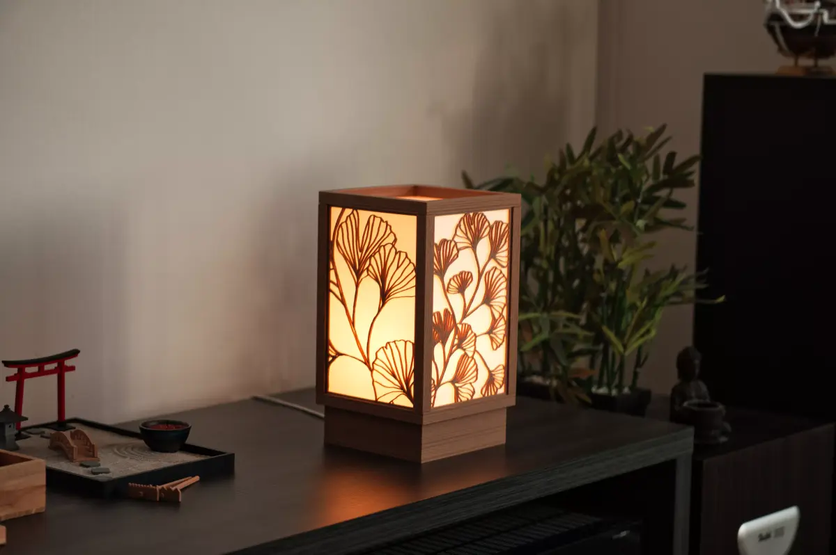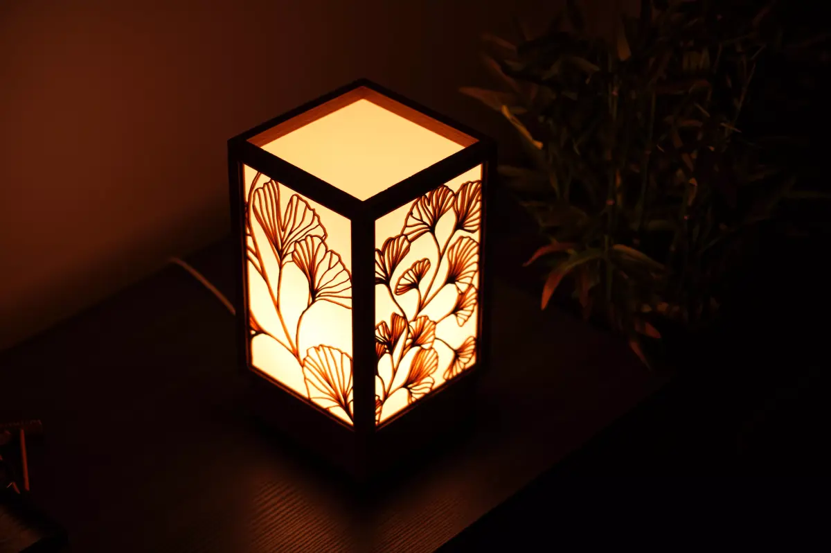 This is a Japanese Andon-Style Lamp with Ginkgo Line Art side panels.If you want to give your home a Japanese vibe or need a cool accessory for your Manga corner, this lamp is for you.