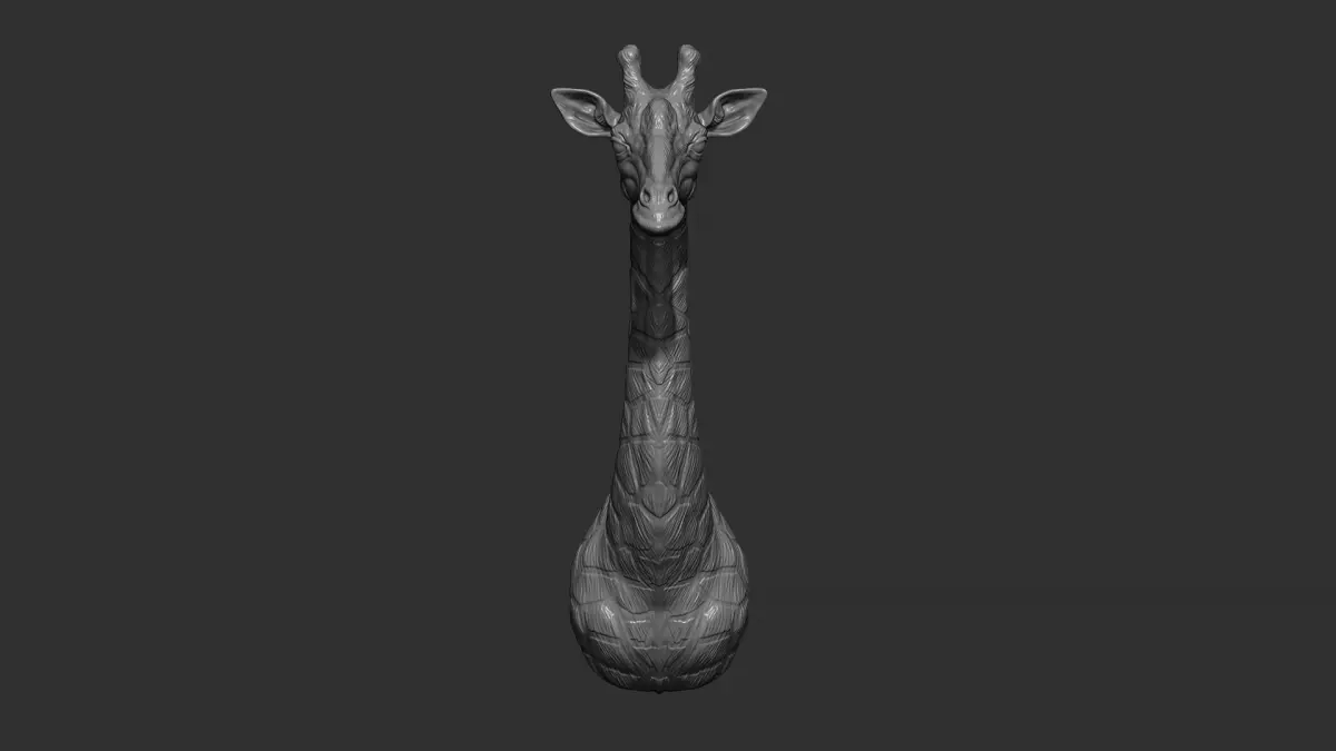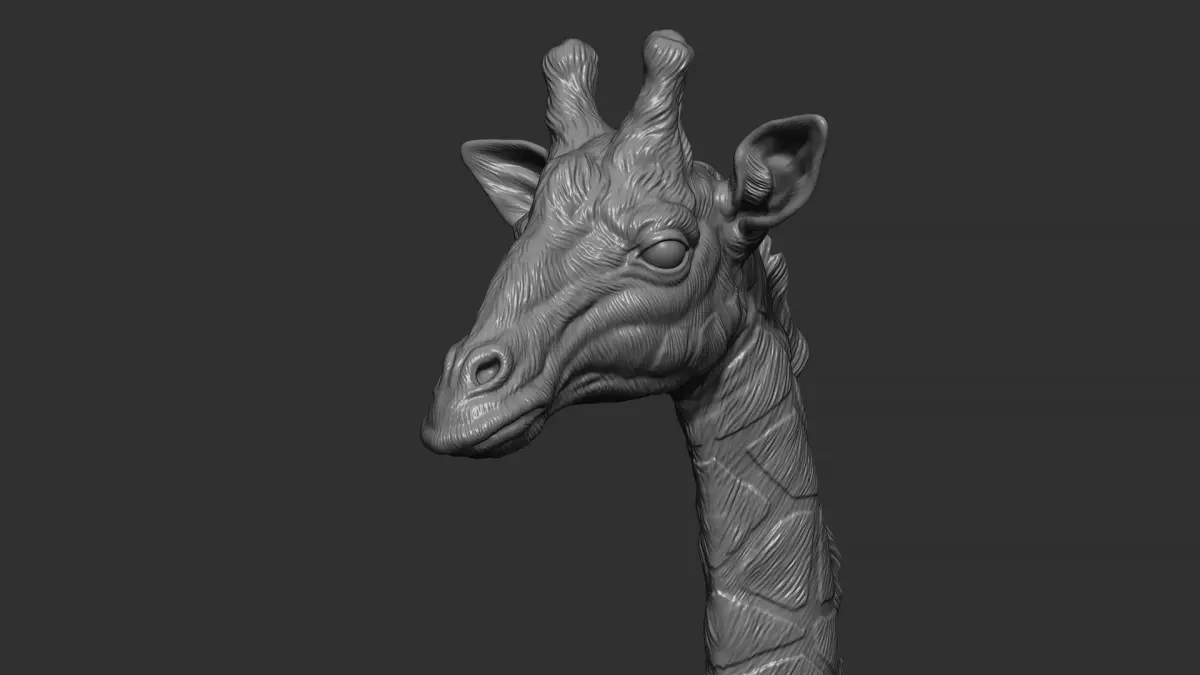 500K STL, OBJ triangulated mesh, Giraffe head bust