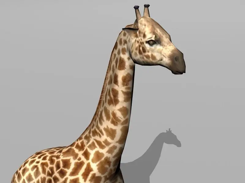 Giraffe model for games, educational, visualization and other purposes.UV mapped and textured, made with Maya 7.Maya 7 (.ma, .mb), OBJ (.obj), 3ds Max 2009 (.max) and Autodesk FBX (.fbx) format included.Polygons: 1246 quads/ 2480 trianglesVertices: 1244Edges: 2486UVs: 1497Textures included in textures_giraffe.zip file:-1024×1024 .jpg diffuse (color) map-1024×1024 .psd diffuse (color) map with layers
