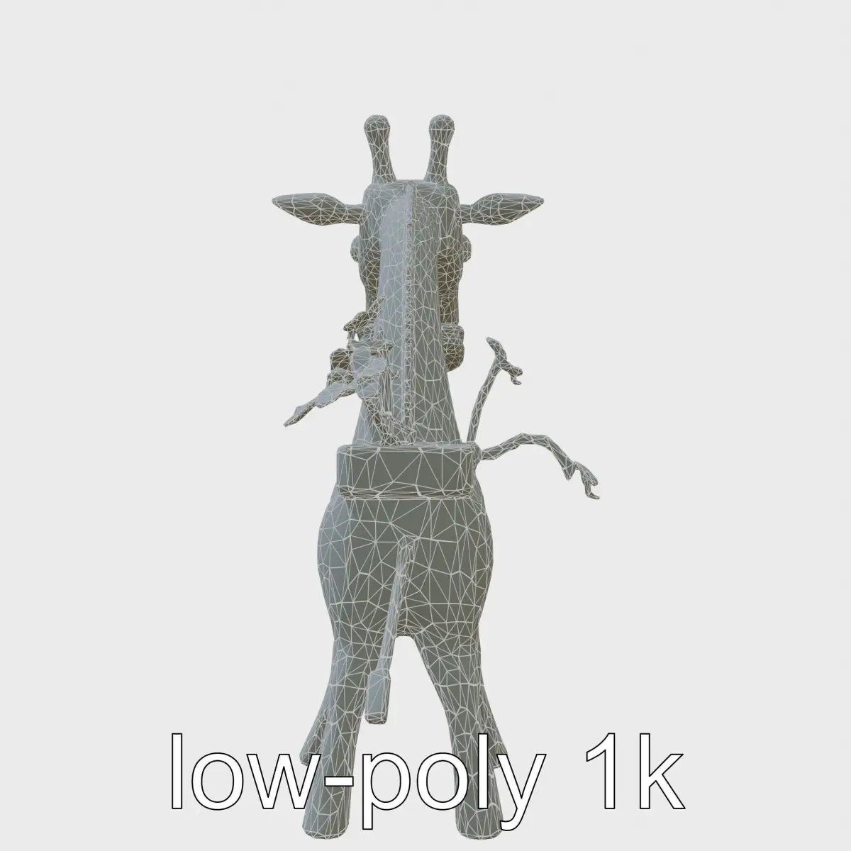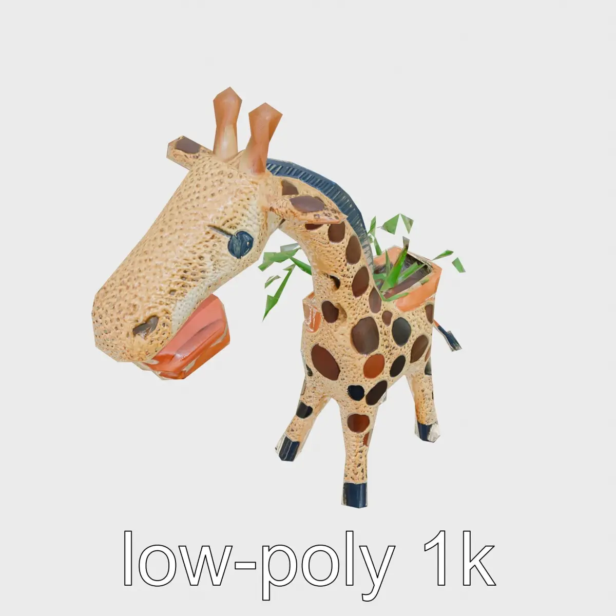 Each model has 3 levels of detail: low-poly, middle-poly, and high-poly, which allows for the use of this model in production rendering (such as 3ds Max, Maya, Cinema4D, Blender, Vray/Corona/Cycles, and all others), game engines (Unity and Unreal compatible), and interactive presentations, providing a choice of detail based on the LOD System principle. This giraffe plant stand is ideal for interior design, animations, or whimsical game environments. The model's textures are PBR, Diffuse, NormalMap, and reflection/roughness/metallic, suitable for any modern rendering engine. All models are accurately unwrapped with no overlapping UV. All textures are 4096*4096 in size. If you like this model, please like and leave a comment.