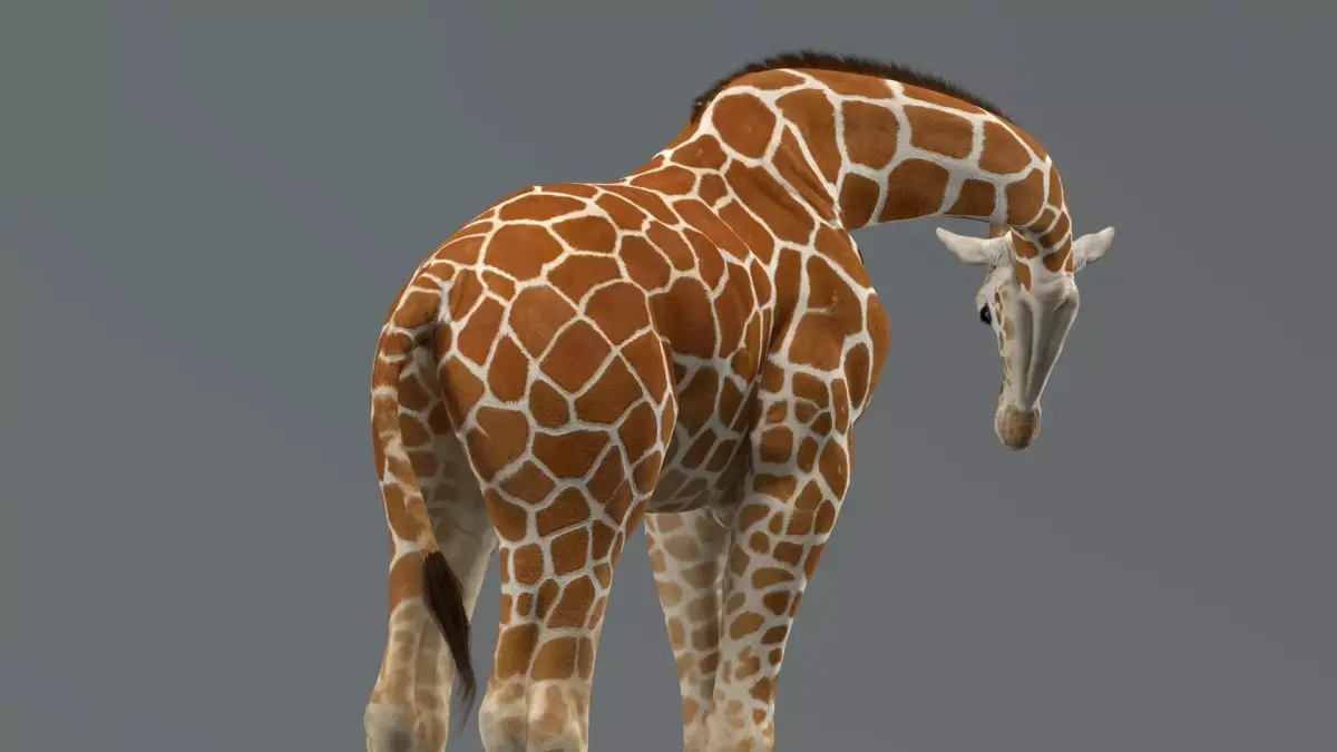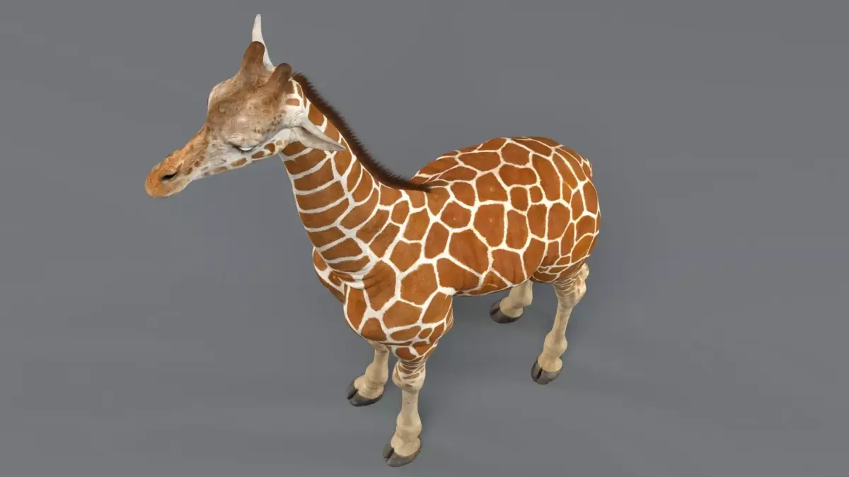 High detailed realistic giraffe model. Clean UVmapped, professional textured and rigged. Based on high quality sculpting and best references.Smoothable mesh with quads mostly.Mouth is openable and have all inside stuff.Hooves, eyes, gum, teeth and tongue are separated meshes.Tail, mane and eyelashes are made by planes with transparency.