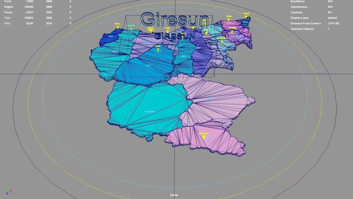 Giresun regions : The model is divided according to the administrative region of Giresun. Each region is clearly separated so you can easily isolate it or change the colors. Names are also editable and separate.