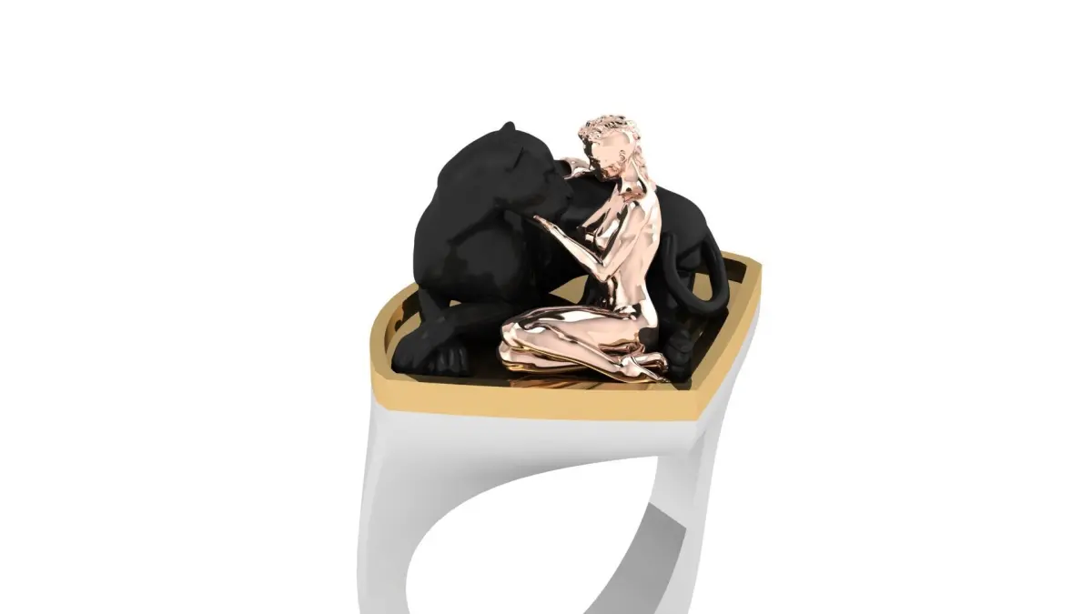 Unique design, very luxe. Girl and panther ring model. High end, high quality, fully ready to be 3d printed. 3dm and stl files will be provided.Not an every day ordinary model, but rather a party cocktail (ready-to-impress) model.