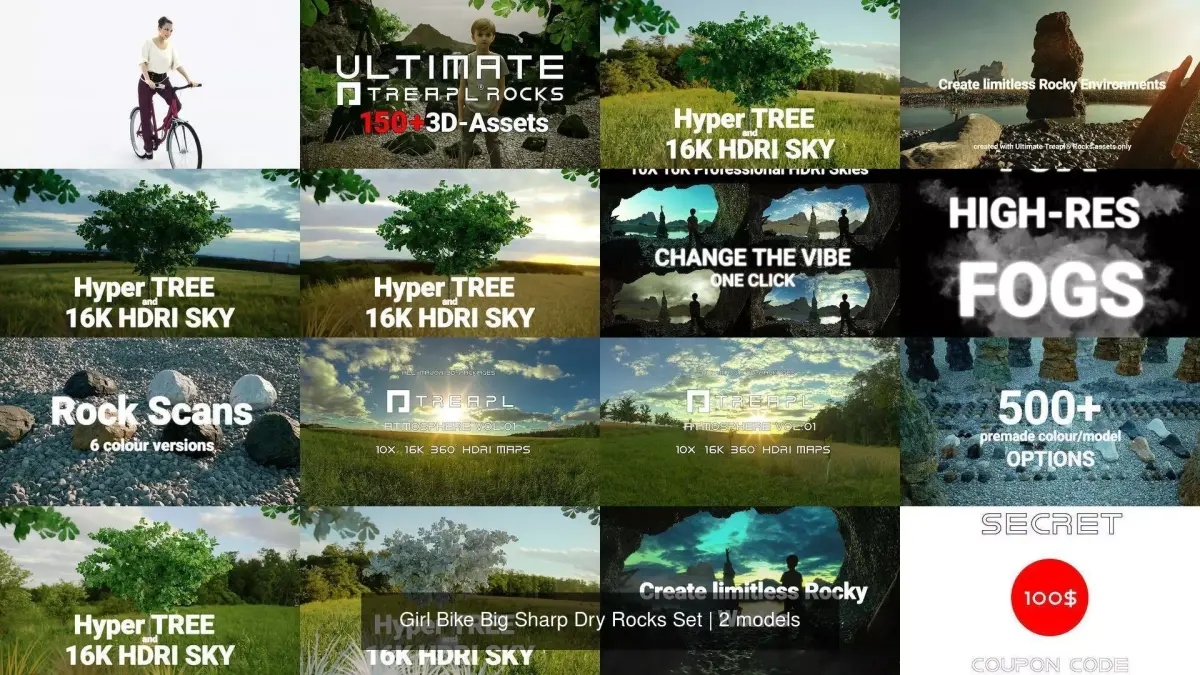 We only used Ultimate Treapl Rocks 3d-assets and VFX for every single presentation image and video you are seeing!