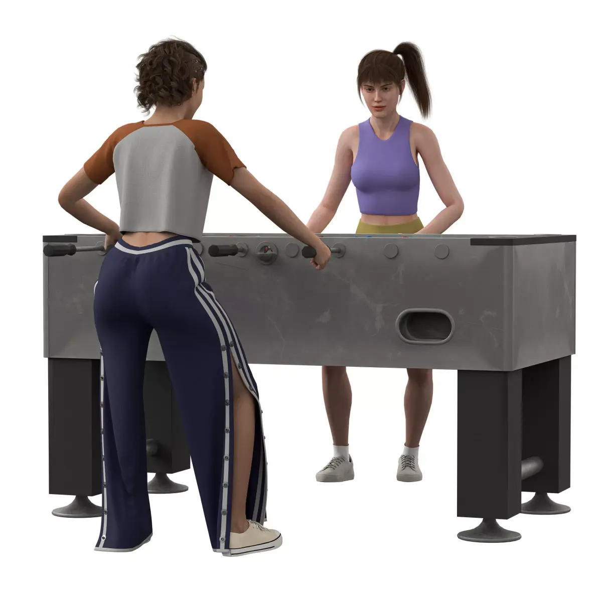 Dynamic Design: Characters are dressed in casual sportswear, capturing the excitement and movement of playing foosball.Engaging Poses: Each character is presented in active poses, interacting with the foosball table, adding realism and liveliness to your scenes.High-Quality Detailing: Meticulously crafted to ensure realistic textures and refined details, from the fabric of the clothing to the foosball table and players.Versatile Use: Ideal for animated films, game environments, virtual arcades, or recreational-themed 3D renderings.Optimized for Rendering: Compatible with Blender, Unreal Engine, Unity, and CLO Virtual Fashion for seamless integration into your workflow.