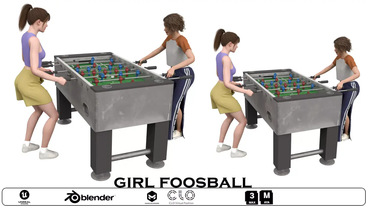 Add a sense of fun and interactivity to your digital projects with this Girl Foosball 3D character set!