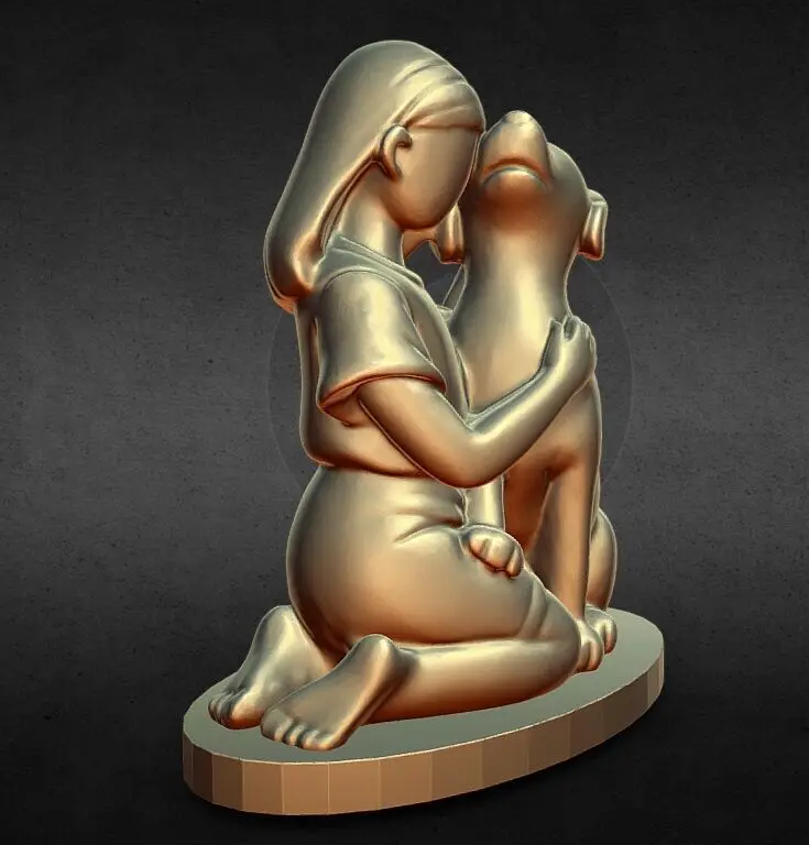 Design ConceptThis sculpture captures the heartwarming moment between a girl and her dog, showcasing themes of love and companionship. It portrays the deep bond and mutual affection shared between humans and their pets, making it a perfect piece for anyone who cherishes animals.