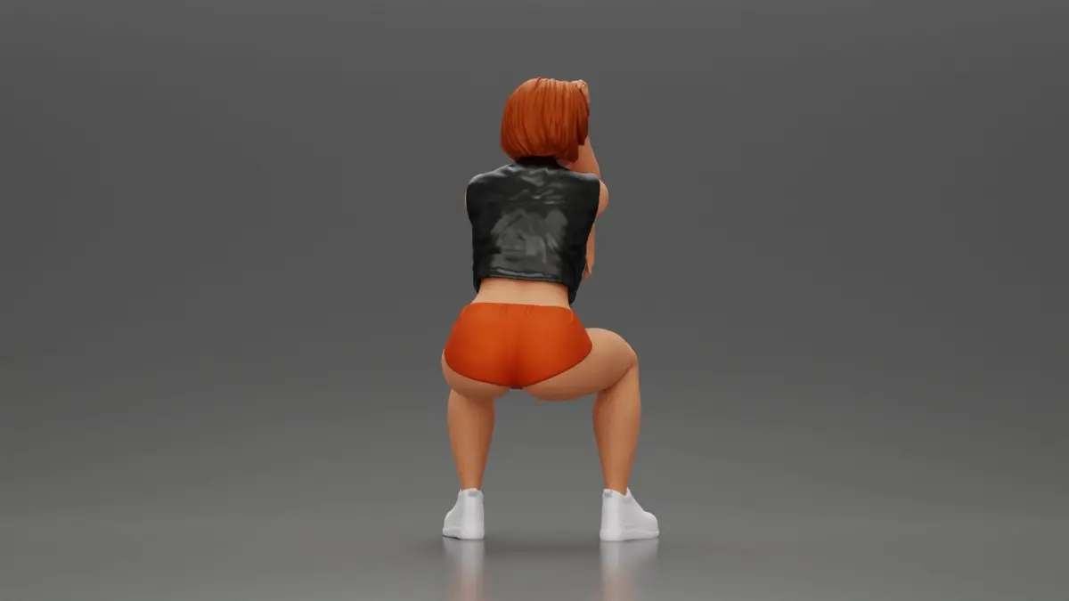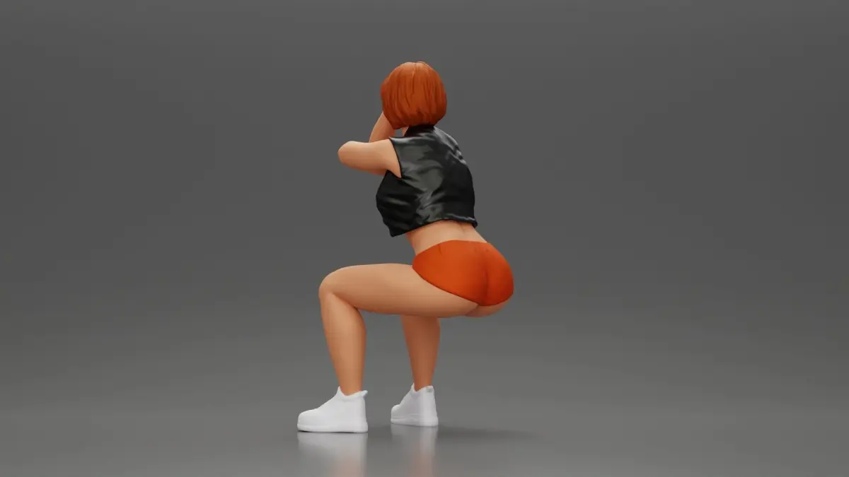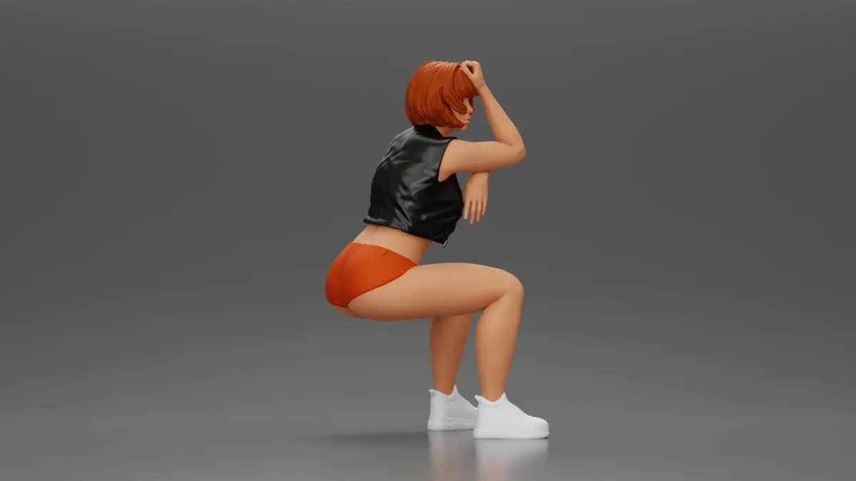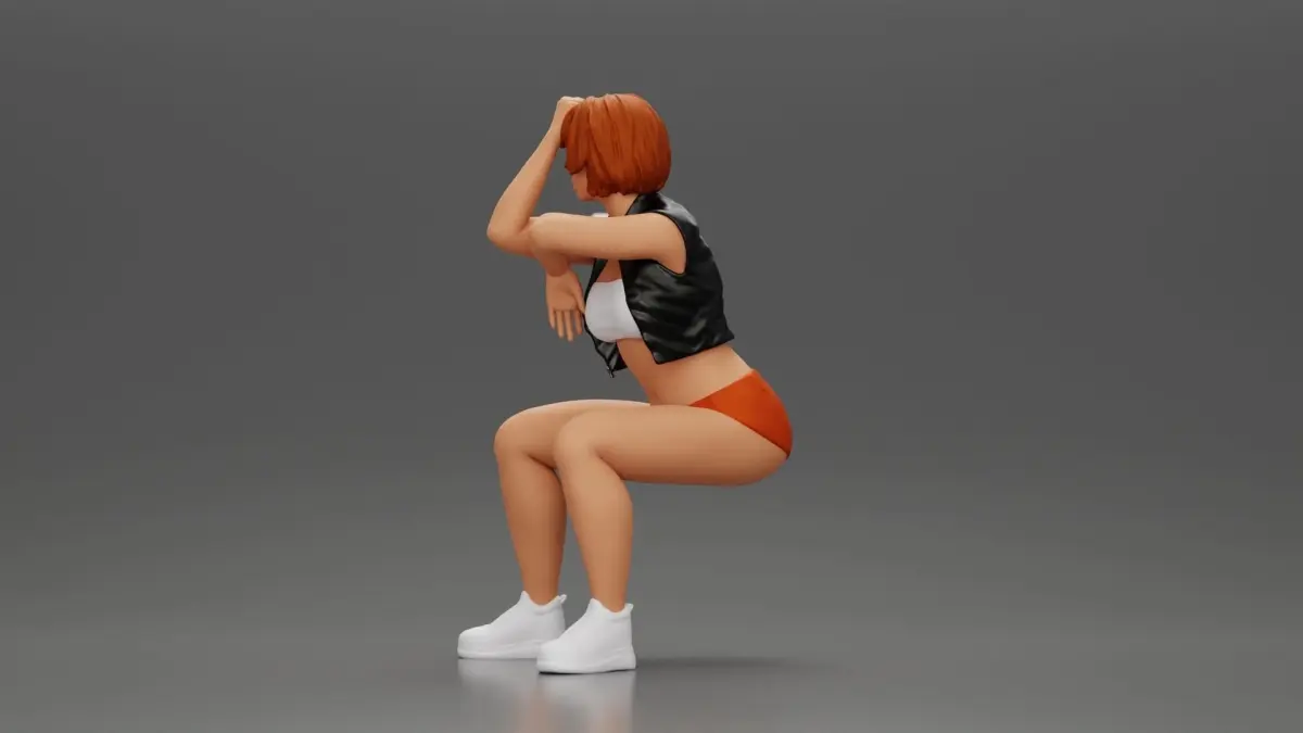 Home Catalog Girl in Mini Leather Jacket Shorts Sitting Leaning with Hands 3D print model