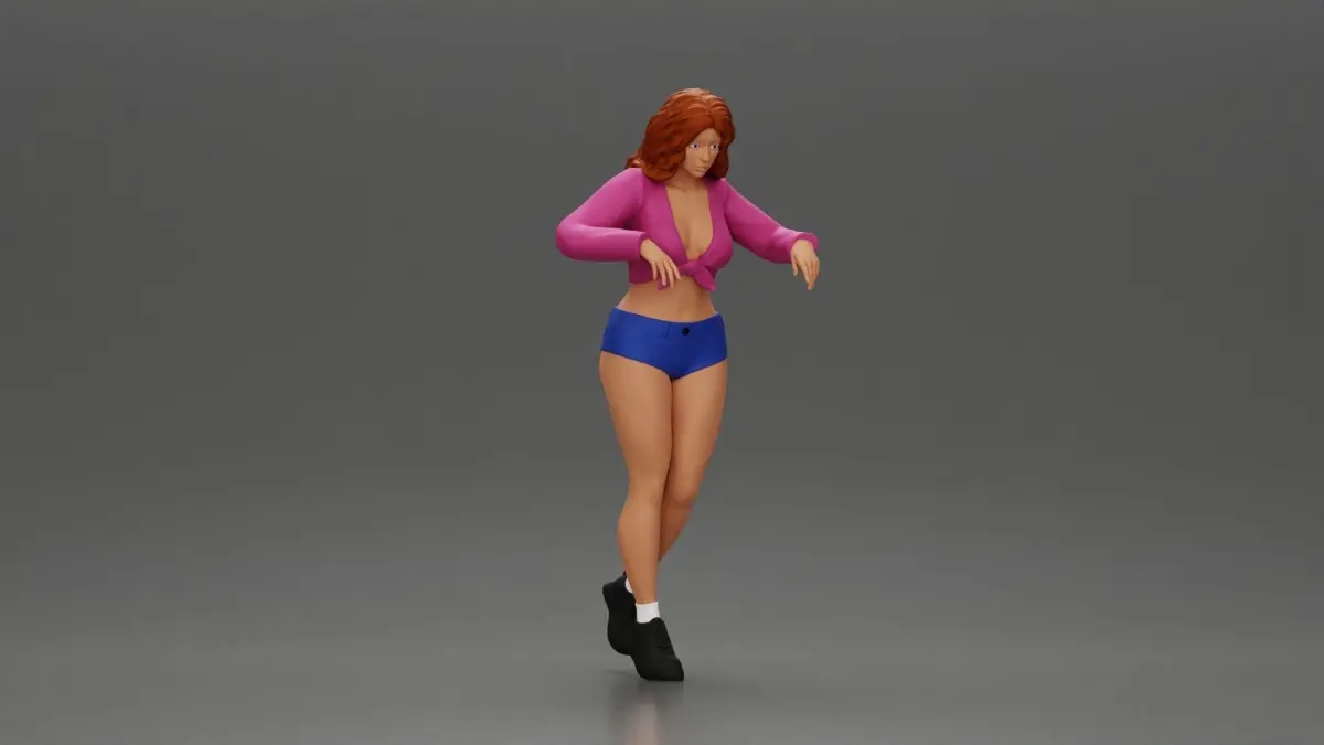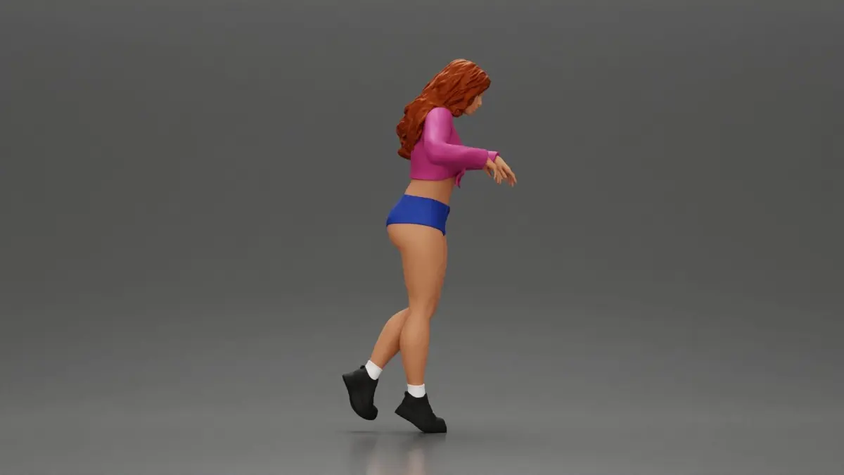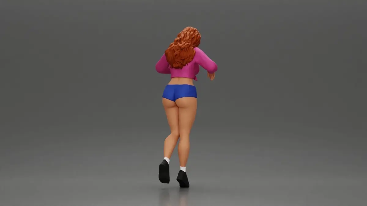 Girl in mini skirt shorts looking out over edge of the stairs 3D print model