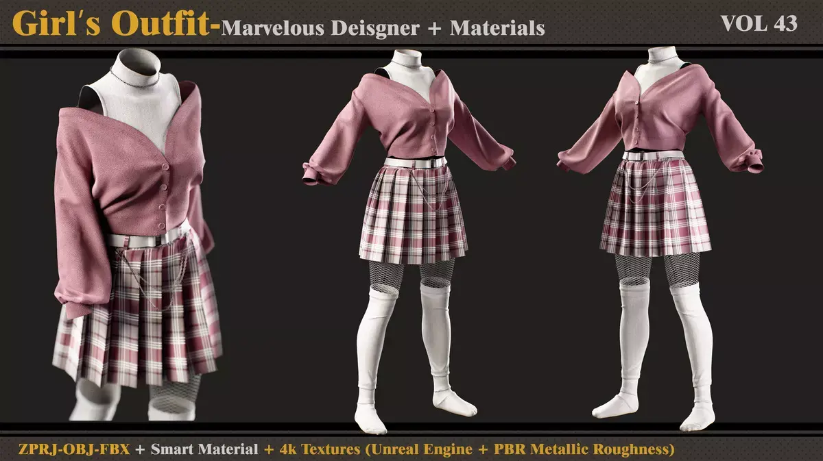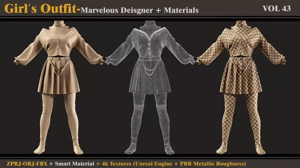 Hi...This is a model of Girls Outfit.It has been created in Marvelous Designer and materials in Substance Painter.(PBR Metallic Roughness)