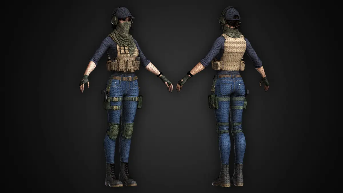 High-quality realistic low-poly 3D models of Girl Spec Ops Soldier