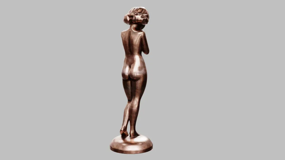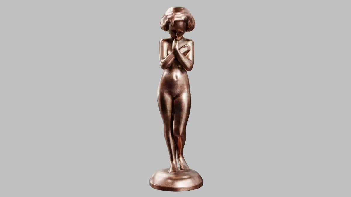 Elevate your interior visualizations with this exquisite 3D model of a stylized female figurine, meticulously crafted to resemble polished copper. This elegant piece depicts a young woman in a graceful, contemplative pose, making it a sophisticated and artistic addition to any virtual environment. The model features ultra-high resolution 8K textures that capture the subtle reflections and rich tones of copper, adding a touch of luxury and realism to your renders.