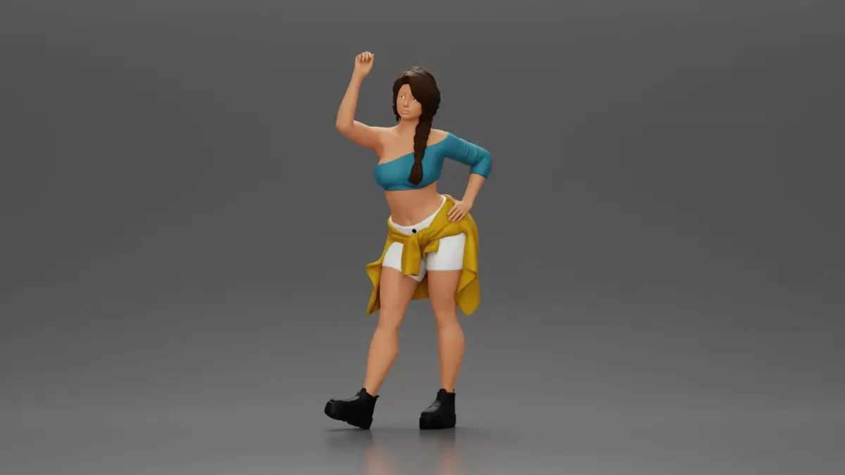 Girl Wearing Bra and shorts with Shirt Tied Around Her Hips 3D print model