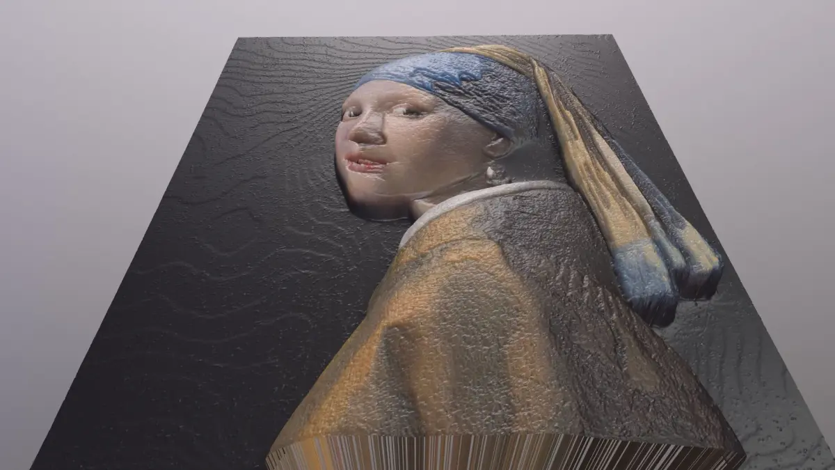 Great 3d model of a bas-relief based on the famous painting GIRL WITH A PEARL EARING by VERMEER for 3D printing . 3d model for cnc machine, 3d printer and laser engravement.