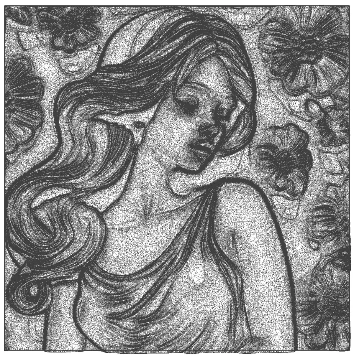 This is a bas-relief 3D model. Bas-relief is a type of relief (sculpture) that has less depth to the faces and figures than they actually have when measured proportionately (to scale). There is also the possibility of adaptation and use in the production of exclusive furniture.