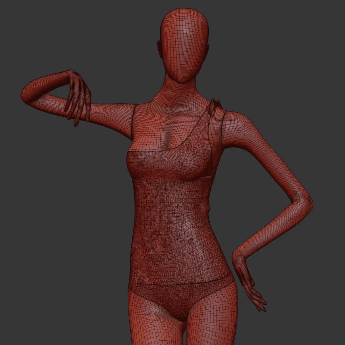 3d model of the mannequins with clothes on. The swimsuit was created in Marvelous Designer. Corresponds to real sizes and shapes.Features:1) High-quality polygonal model, correctly scaled for an accurate representation of the original object.2) The model is fully textured with all materials applied.3) All materials are included and mapped in every format.4) 3ds Max models are grouped for easy selection, and objects are logically named for ease of scene management.5)No cleaning up necessary just drop your models into the scene and start rendering.6) Units: cm