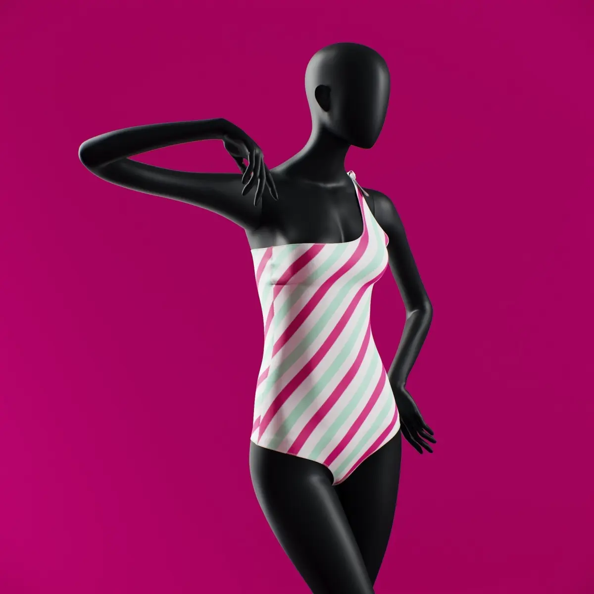 Bright and colorful female swimsuit Girls Band Woman Swim One-shoulder One-piece fully textured, detailed design that allows for close-up renders.