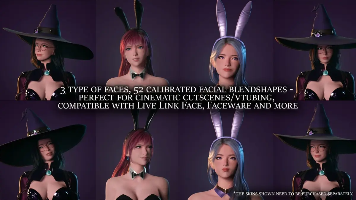 See video-demo and description to check all opportunities (modularity, animations, blueprints, blendshapes, gameplay etc).