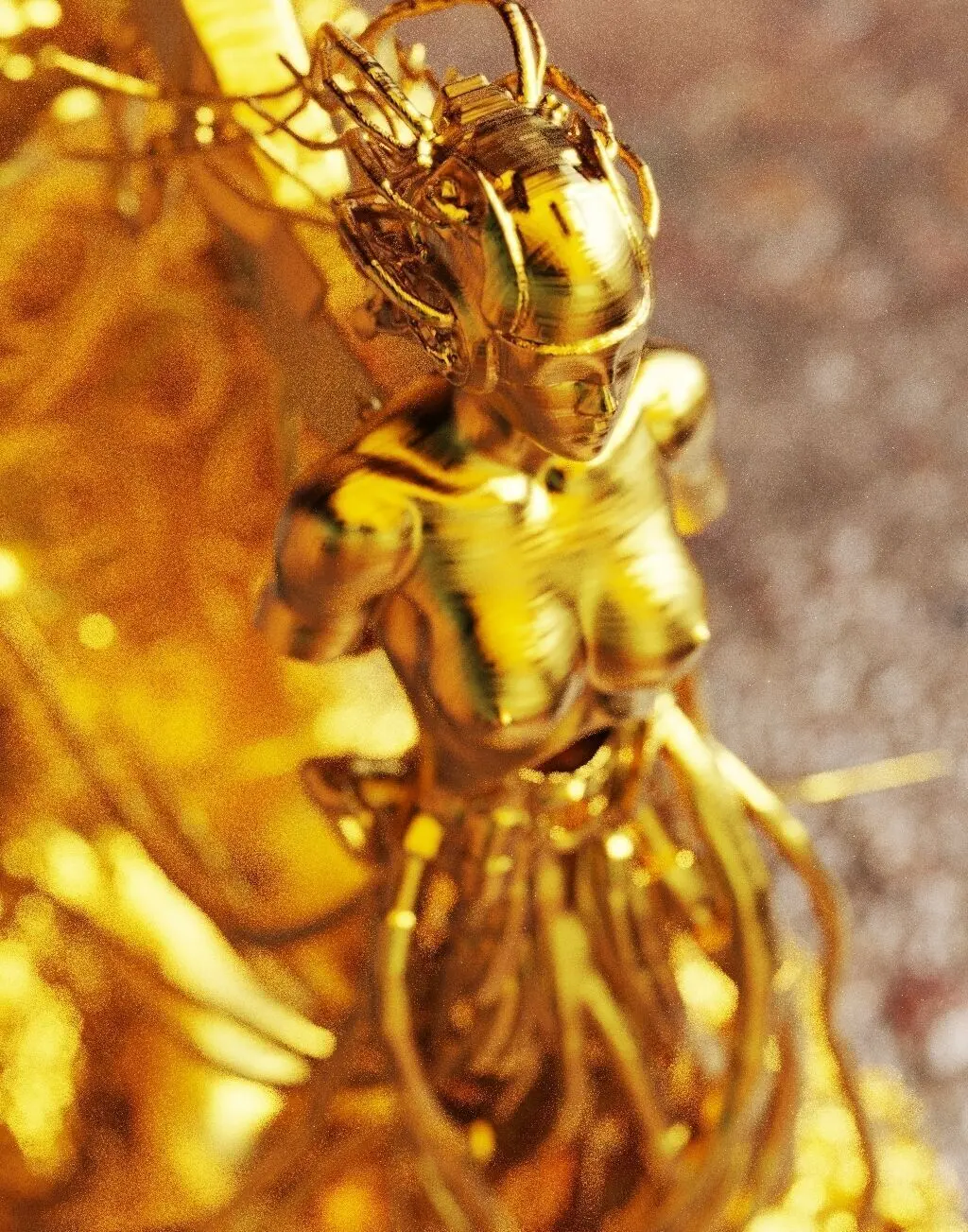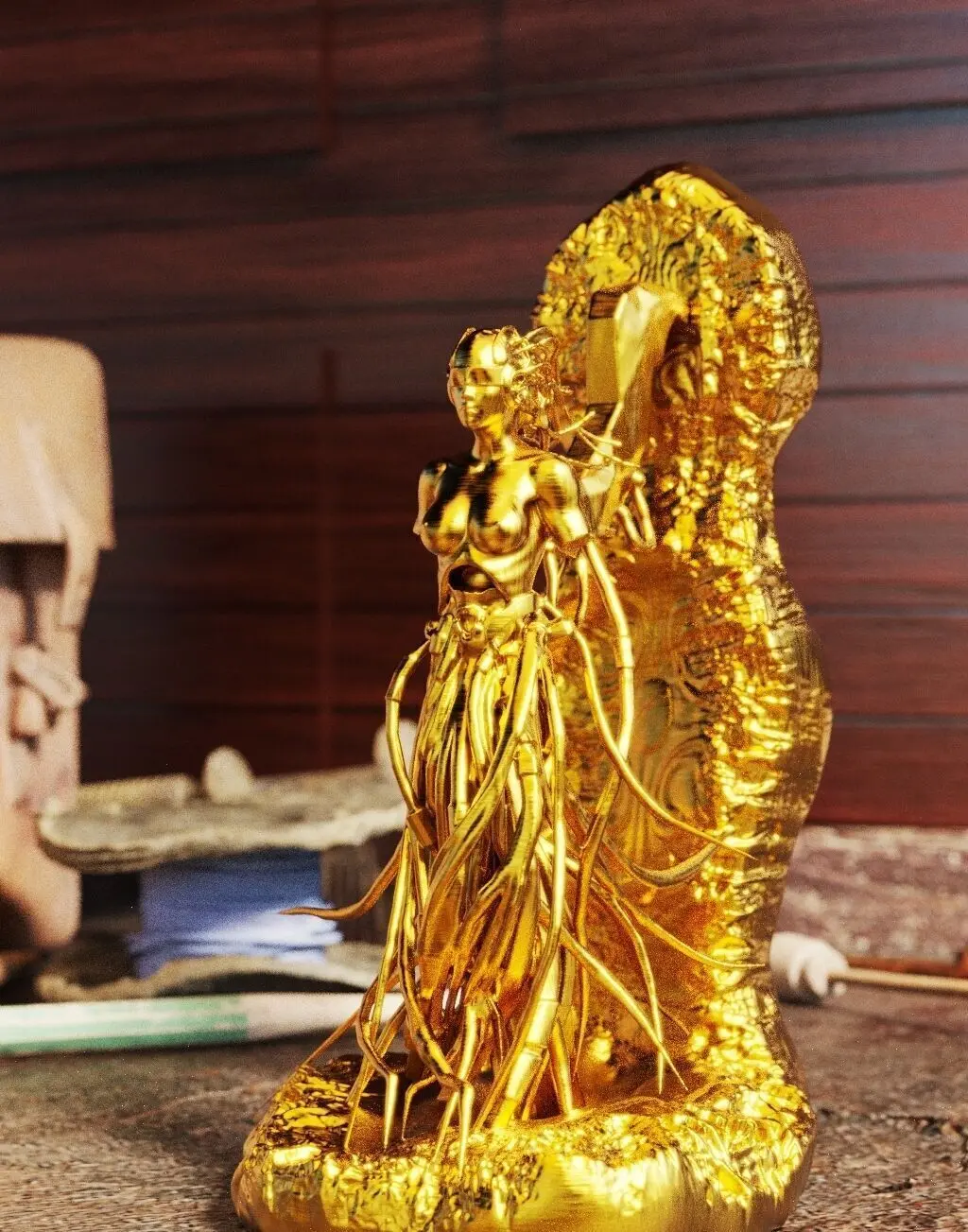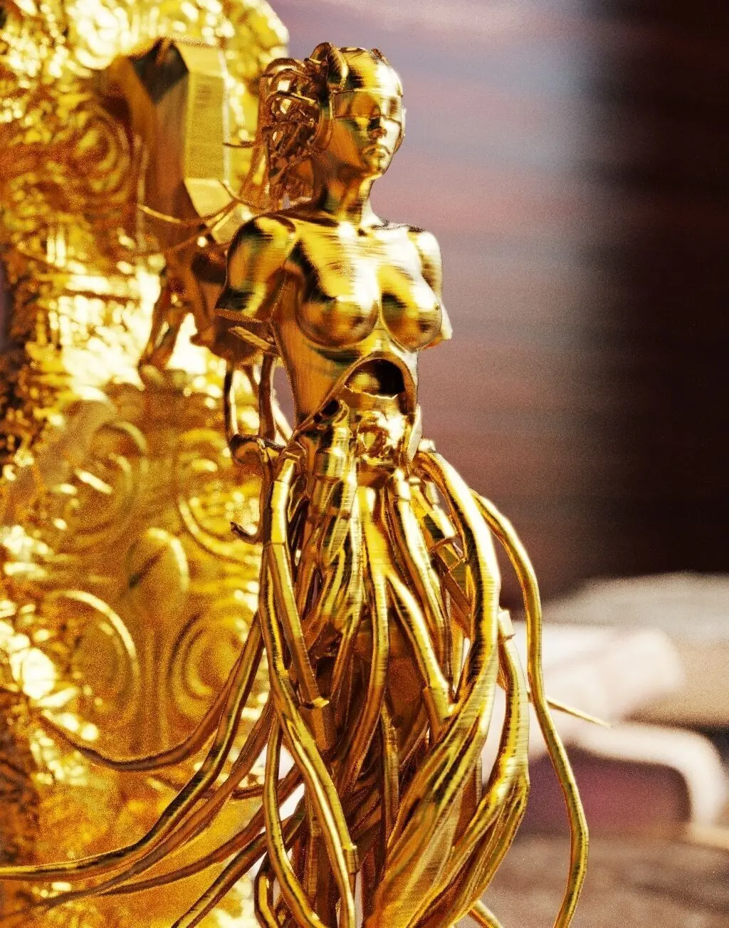 Français:Cette sculpture intitulée Femme Prototype réinterprète la forme humaine avec une audace conceptuelle. Elle incarne la fusion de l'organique et du futuriste, un avant-goût de la symbiose entre l'homme et la technologie avancée. Sa pose, à la fois élégante et mécanique, questionne les limites de l'identité et de l'innovation, faisant de cette œuvre une réflexion sur le potentiel de demain.