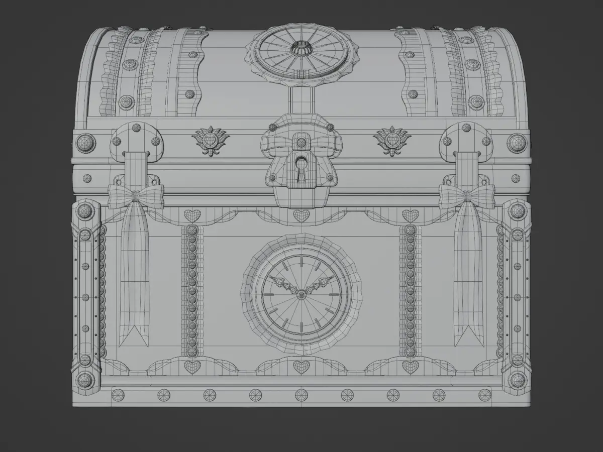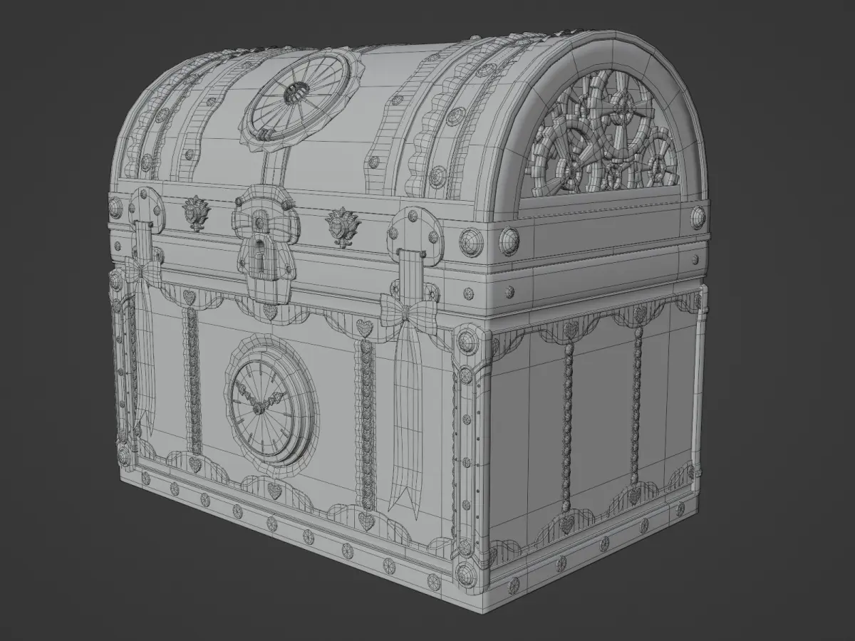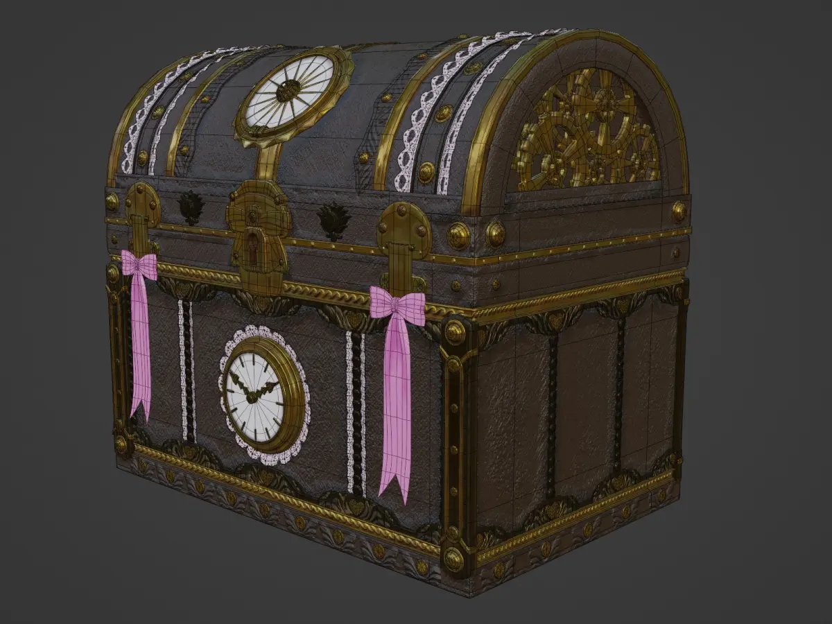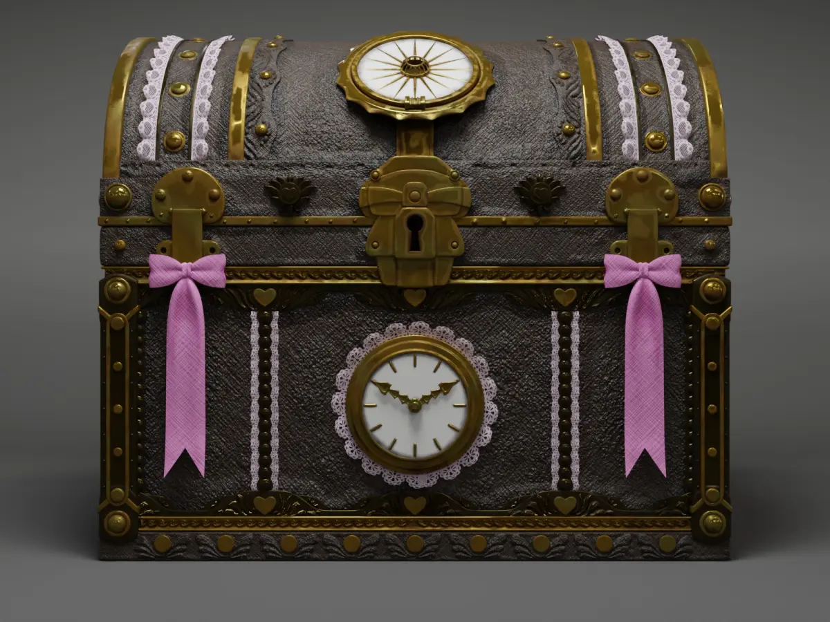 This steampunk-style treasure box is featured metal and leather textures, it is adorned with intricate gear designs.