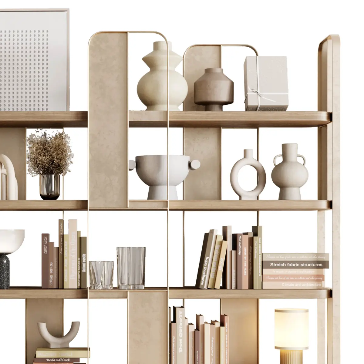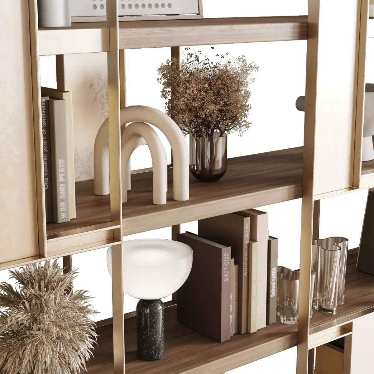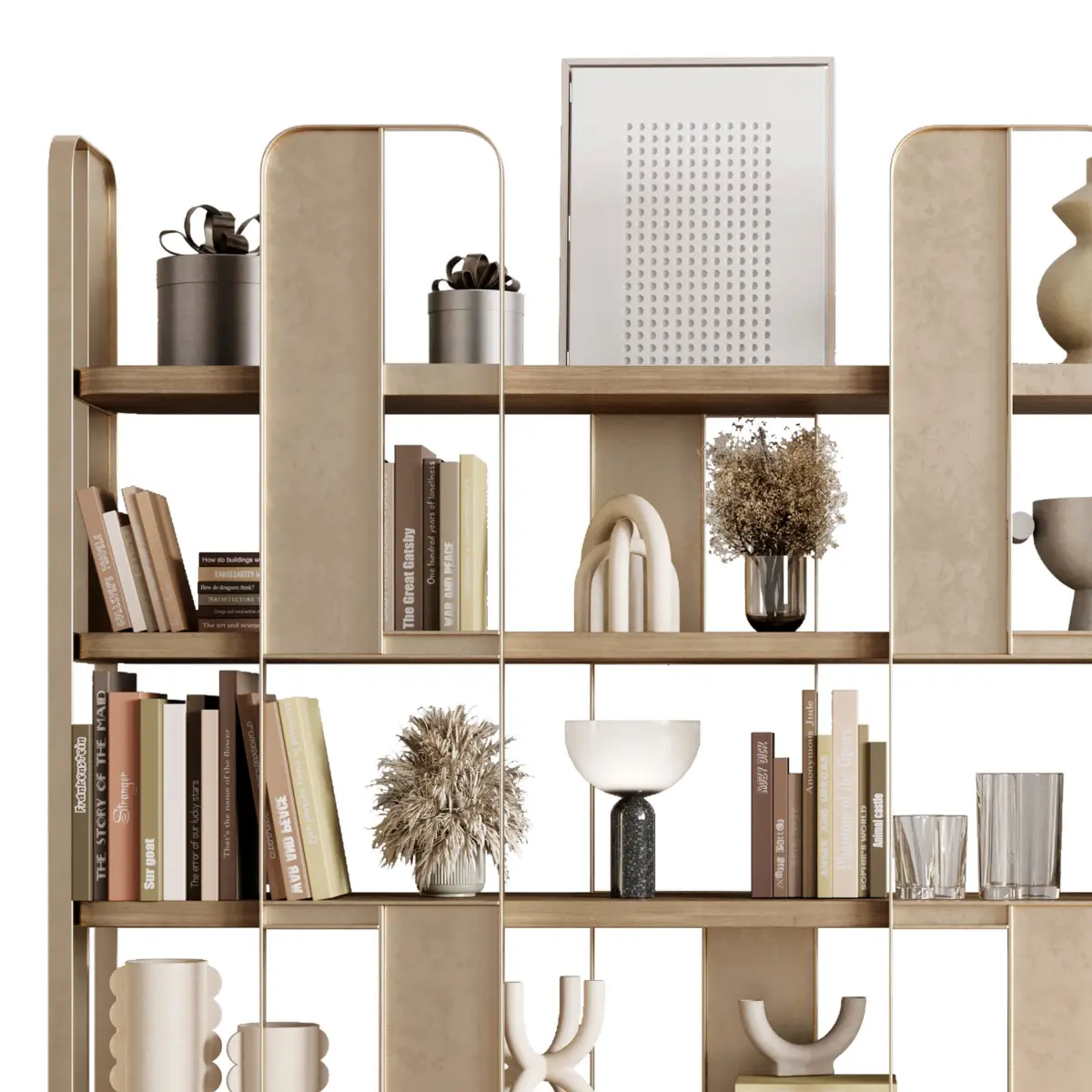 Giselle Cabinets - Golden Metal Shelves Decorative With Plants and Book - Metal Rack 10