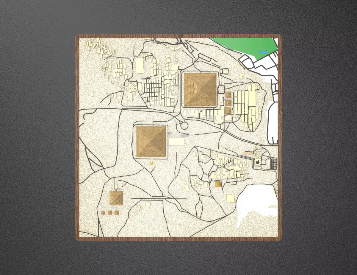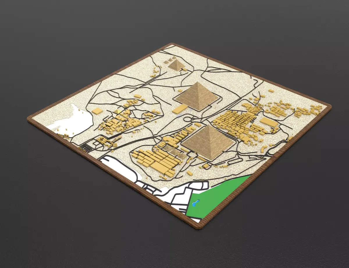 Discover a highly detailed 3D relief map of the Giza Pyramids complex, designed with precision to showcase one of the world’s most iconic archaeological sites.This model features: