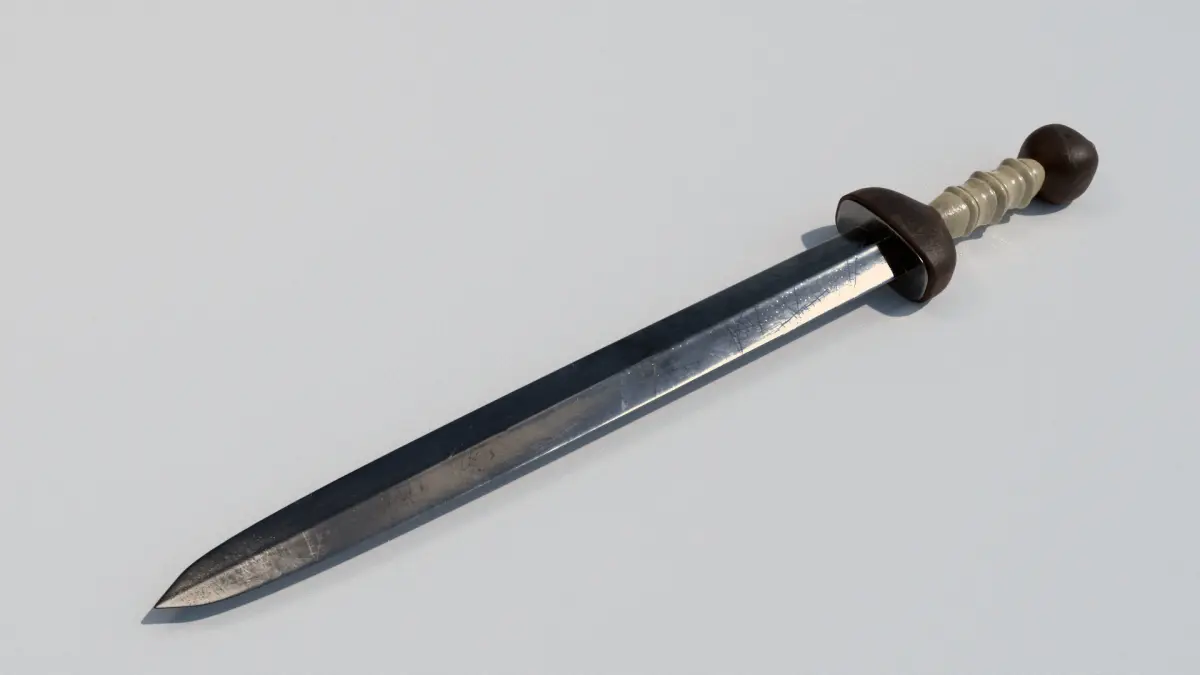 Roman sword Gladius type hispaniensis modeled with historical accurancy following Trajan's Column reliefs. Modeled in Blender and textured with Substance Painter. Files include a 18k vertex .obj model, pack of 2048x2048 textures and .stl file ready for printing.