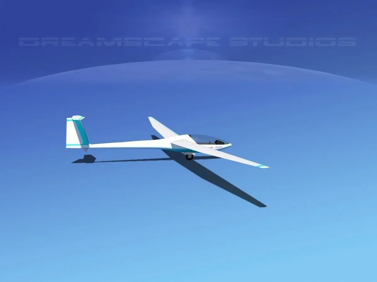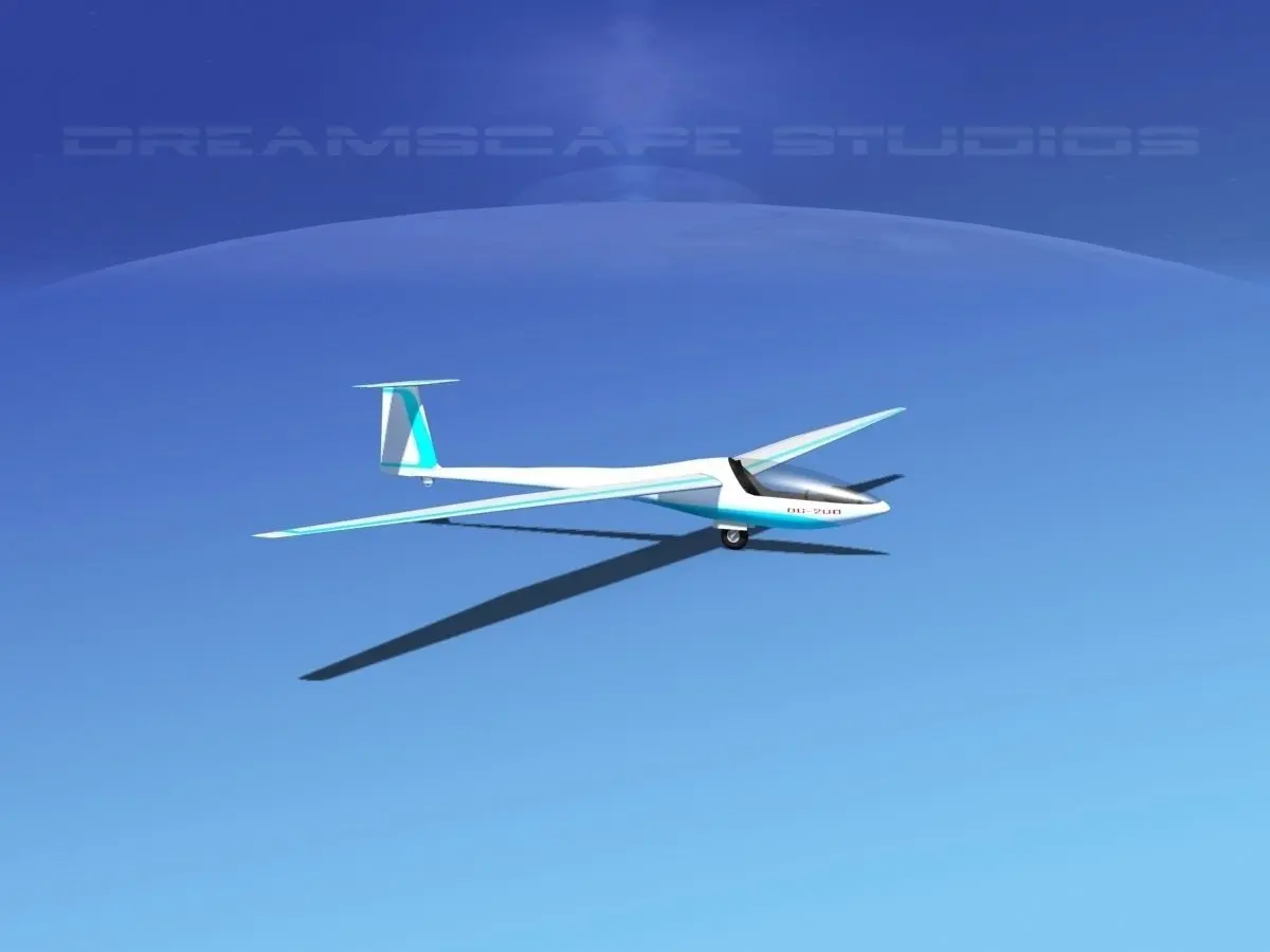 Glaser Dirks DG200 15Mtr Sailplane V09 This model is built near to scale, fully textured and has a detailed cockpit. The canopy can be opened. The ailerons, elevator, and rudder are animateable. We also have introduced a set of standard wing tips installed and extra winglet wing tips in the event you would like to use them. This model comes with all the materials and textures shown here. The model is also provided here in several different formats for your immediate downloading.