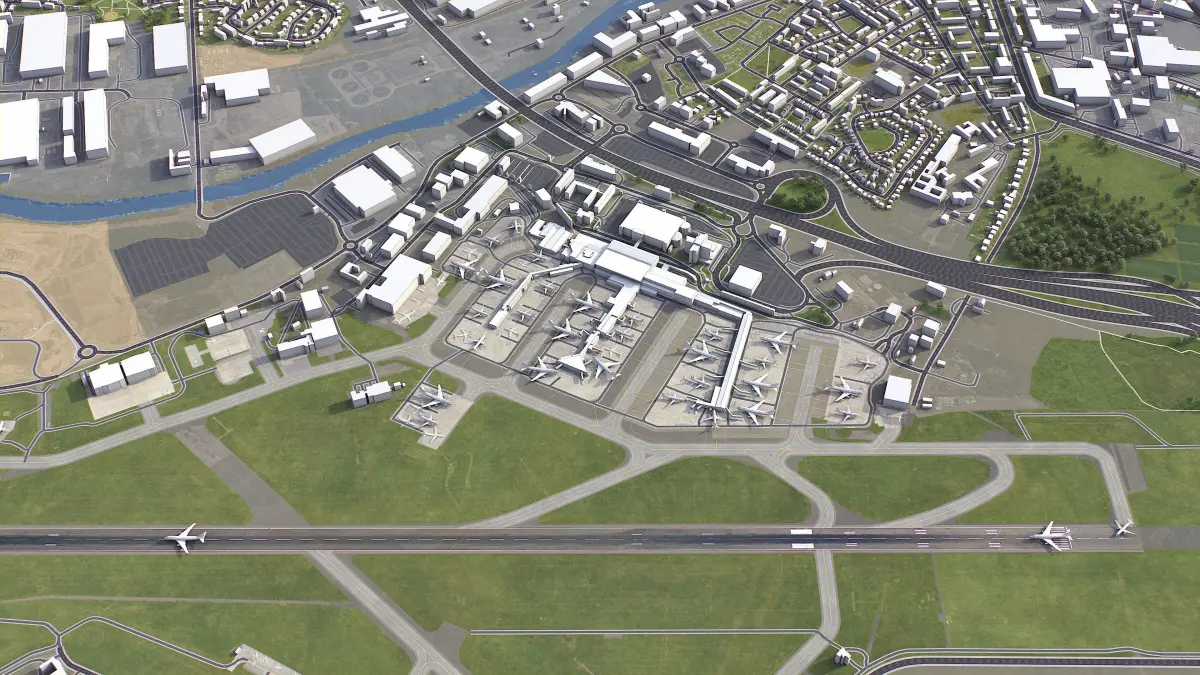 - Trees, vegetation, land-use and airport surface with the textures assigned