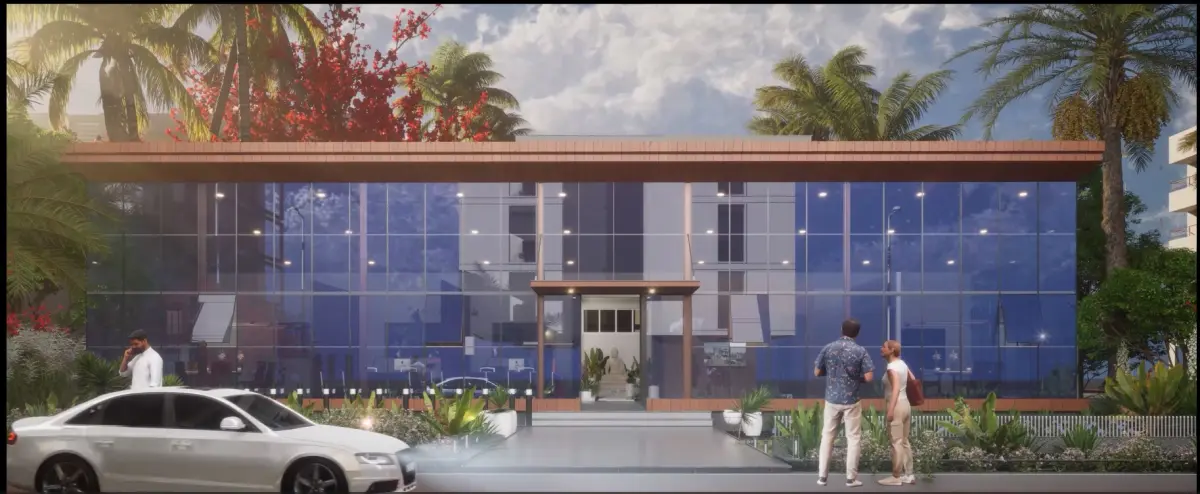- Glass and Metal Facade: Reflective glass panels with minimalist metal framing.
