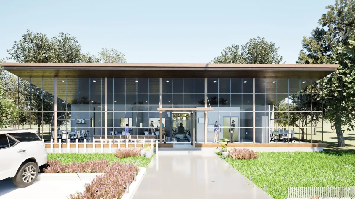 This versatile 3D glass building model is designed with a sleek modern facade, combining glass panels, metal accents, and sophisticated landscaping. Perfect for use as an office, restaurant, or warehouse, it features customizable interior spaces with stylish wall paneling, open layouts, and modern materials.