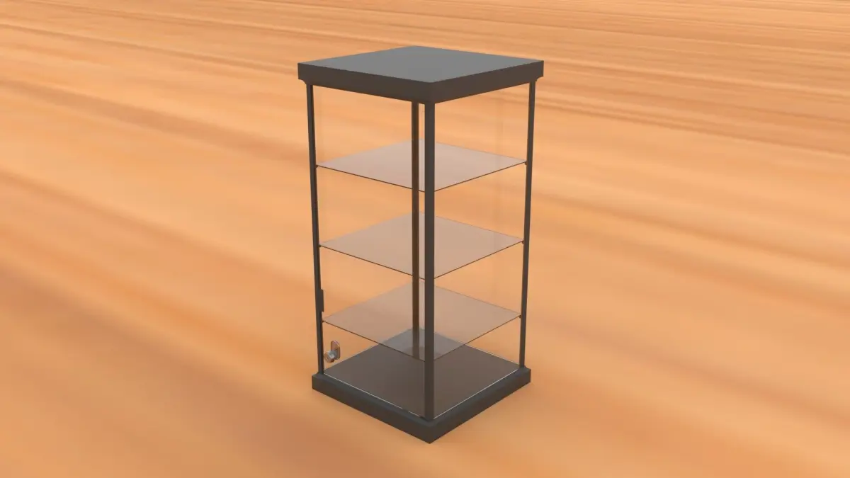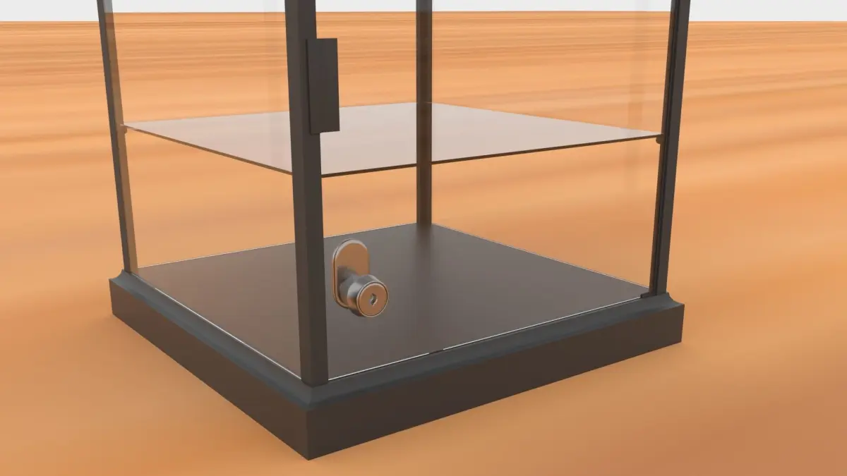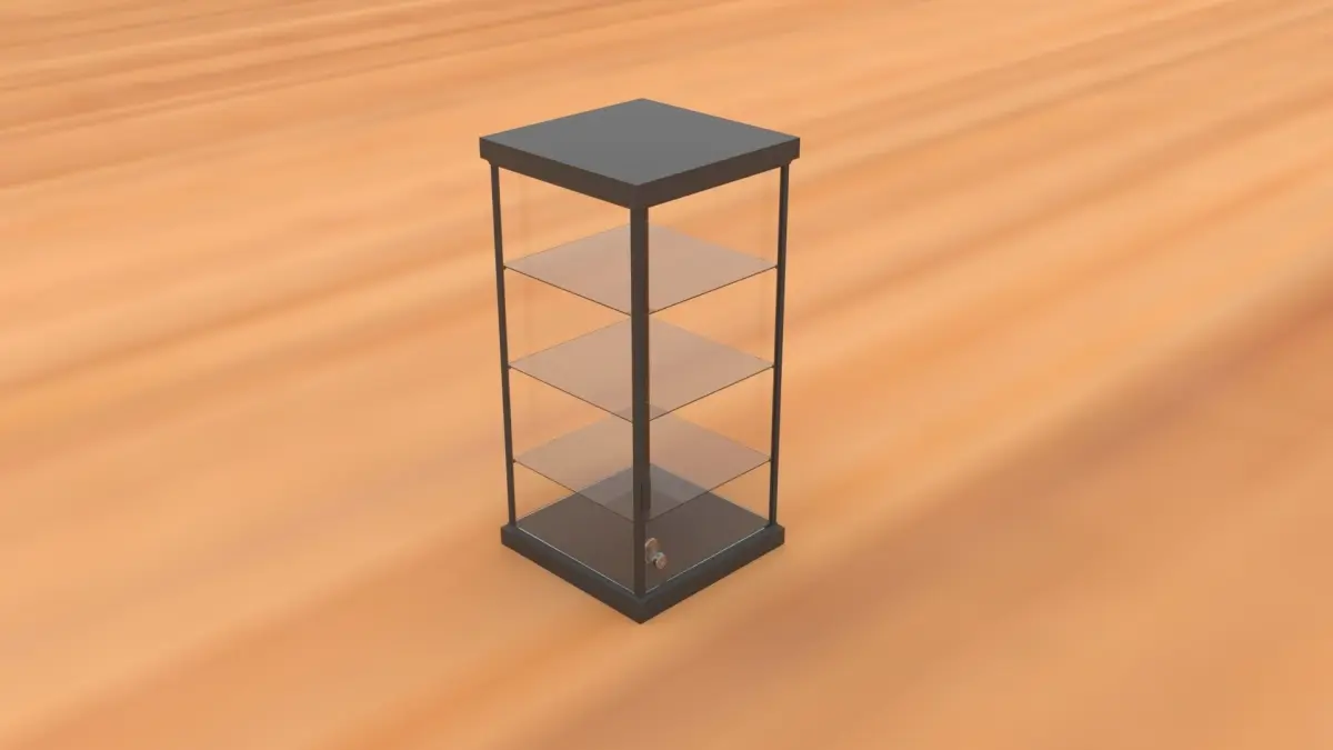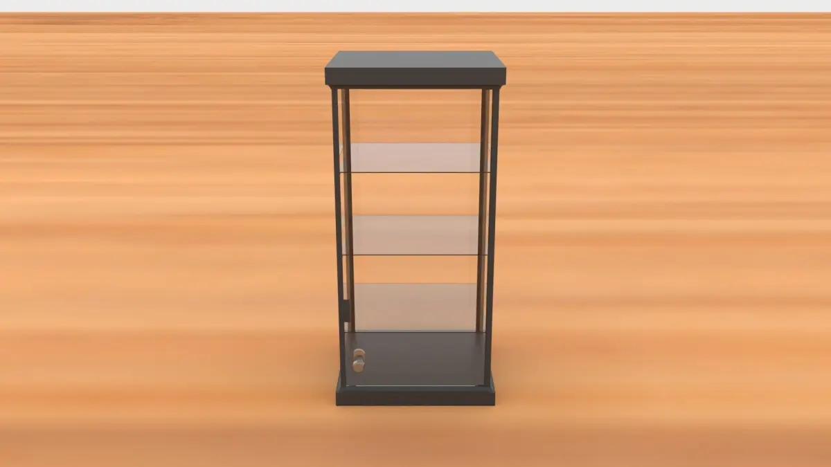 This is a glass cabinet that makes use of the alpha channel on its diffuse map to create transparency for the glass walls, doors and shelves. There is also a diffuse map that does not use the alpha channel and a separate opacity map. It has a lock on the front glass door which uses a metallic map to make it metal. There are also rubber stops on the front glass door located on either side. Each shelf rests on 4 rubber pegs that stick out from each corner of the cabinet.