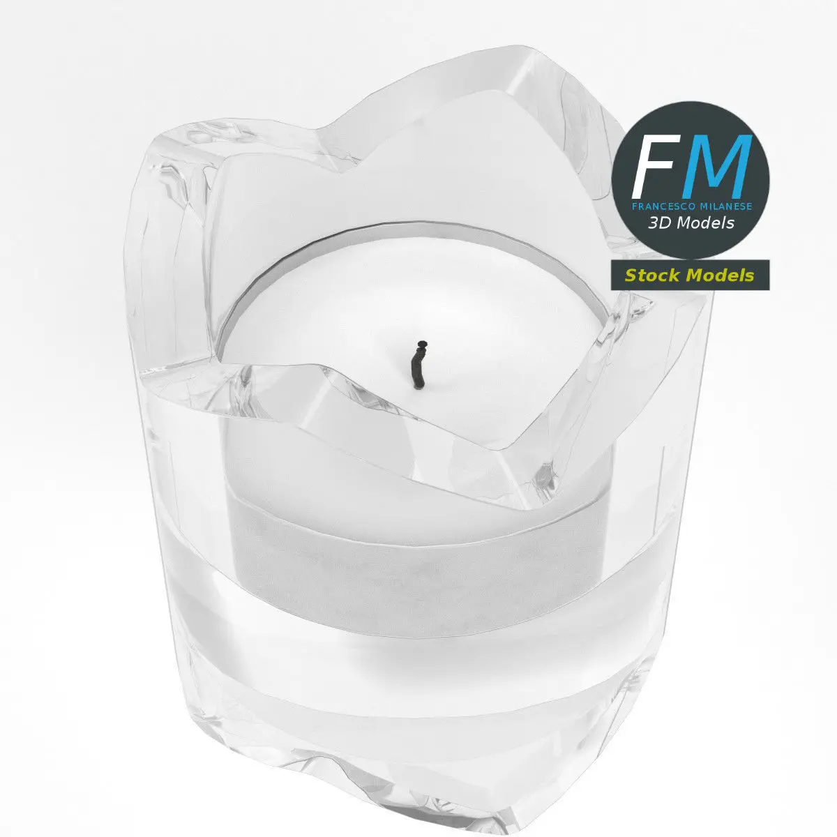 Glass candle holder 3D Model. 2 individual objects (glass, candle), each one with its own non overlapping UV Layout map, Material and PBR Textures set. Production-ready 3D Model, with PBR materials, textures, non overlapping UV Layout map provided in the package.
