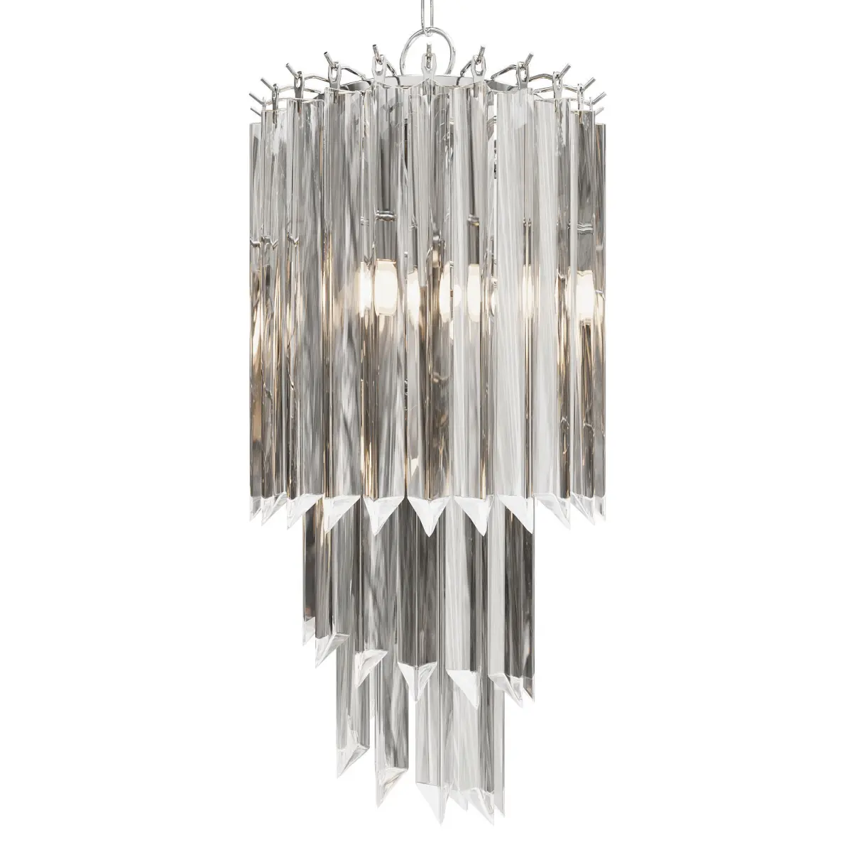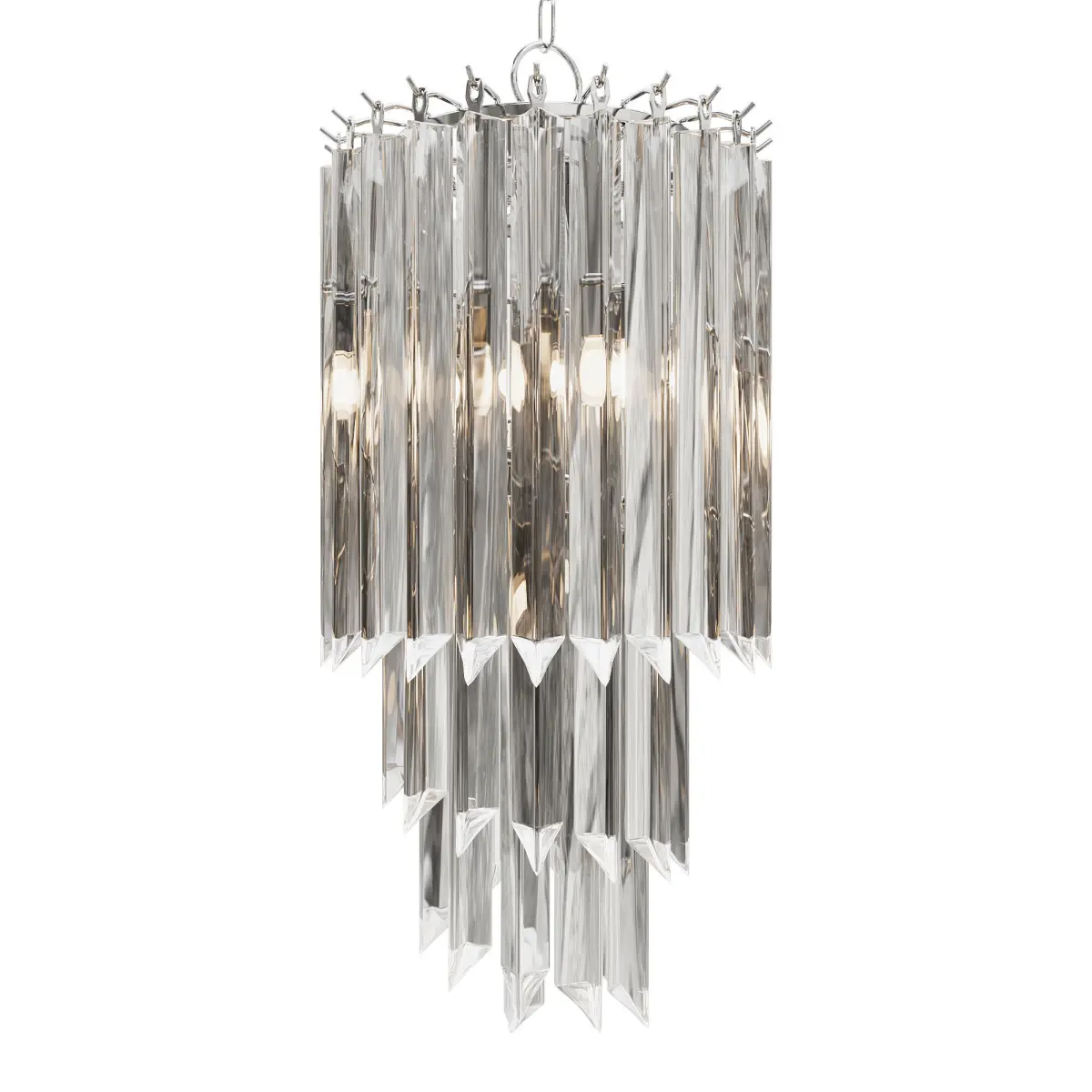 The model was created in version 2022 and saved in an earlier version 2019.The OBJ format is also present.There are no third-party plugins, all elements are named by their names.For Corona render, it is recommended to install version not lower than 1.5, since the glossiness of materials is configured taking into account PBR,(SCENE IN MILLIMETERS)Height: 690 mm. Width: 300 mm. Length: 300 mm.Such a glass chandelier can be used as the main lighting in the bedroom, filling it with soothing light in the dark. The recommended lighting area is 8-10 m2.https://garda-opt.ru/catalog/potolochnye-svetilniki/20md3399-4ni-svetilnik-potolochnyy-d-30-5-68sm/