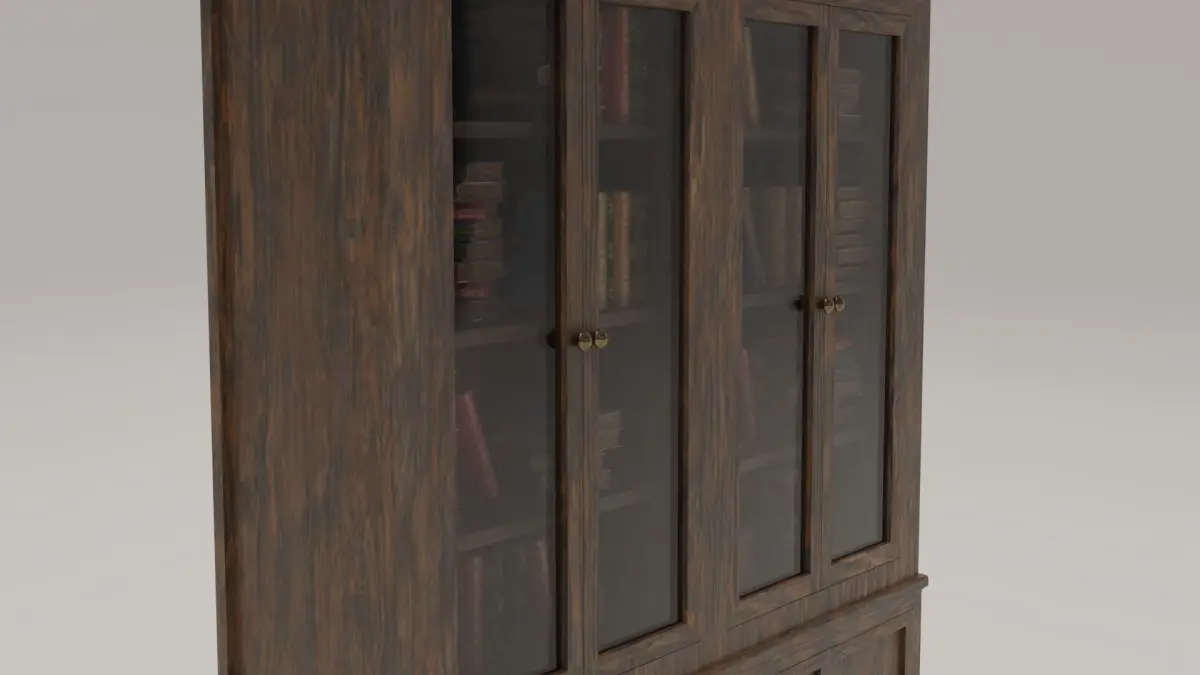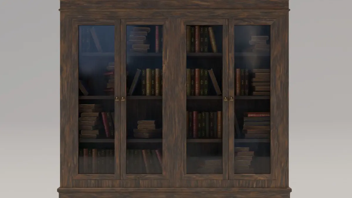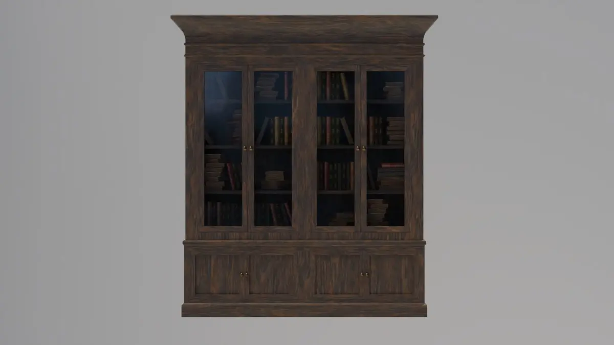 Glass door antique bookcase with books included modeled with Blender. 16,072 vertices includes bookcase and books. Textures included and everything is uv unwrapped.