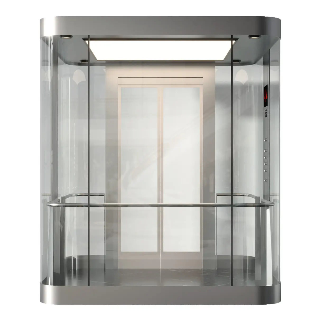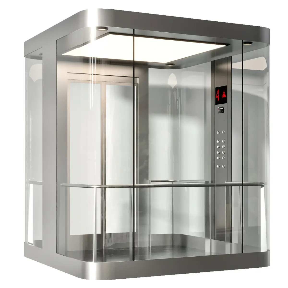 High-quality 3D model of a modern panoramic glass elevator, perfect for architectural visualizations of commercial buildings, luxury hotels, shopping centers, or high-end residential towers. This transparent lift design features sleek stainless steel framing,interior lighting, and detailed control panel elements. The model is fully optimized for close-up renders, VR walkthroughs, and real-time applications. Ideal for interior designers, architects, and 3D artists looking for realistic vertical transport solutions.