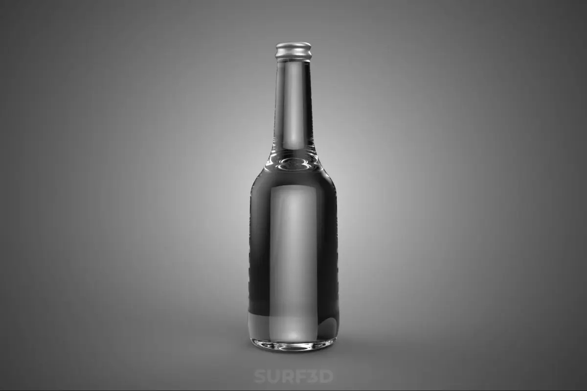 The bottle substrate is overwhelmingly composed of soda-lime glass (ASTM International designation Type III), a material selected for its chemical inertness, transparency, relative low cost, and ability to withstand significant internal pressure generated by dissolved carbon dioxide. The typical manufacturing process involves the blow molding of molten glass into standardized molds, resulting in a smooth, seamless body or one exhibiting characteristic mold lines. The color is usually clear (flint glass) or occasionally colored (e.g., amber, green) to filter ultraviolet radiation, although the visual description suggests a non-tinted state.
