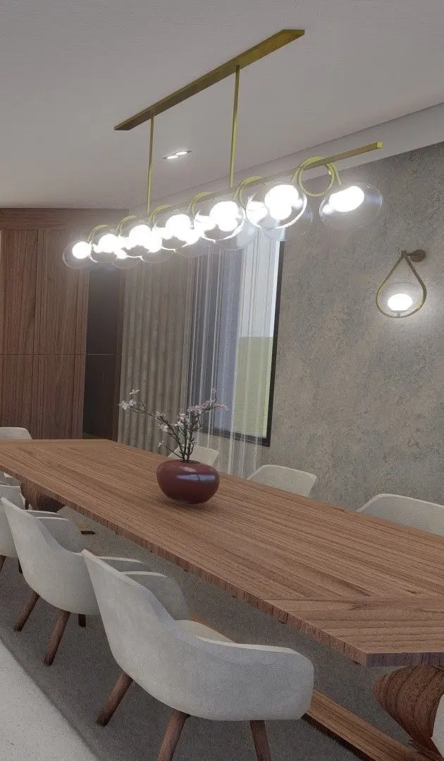 2 different designs of lighting fixtures with various glass globes. One of them is shaped like a long line, one of them is shaped like a circle.