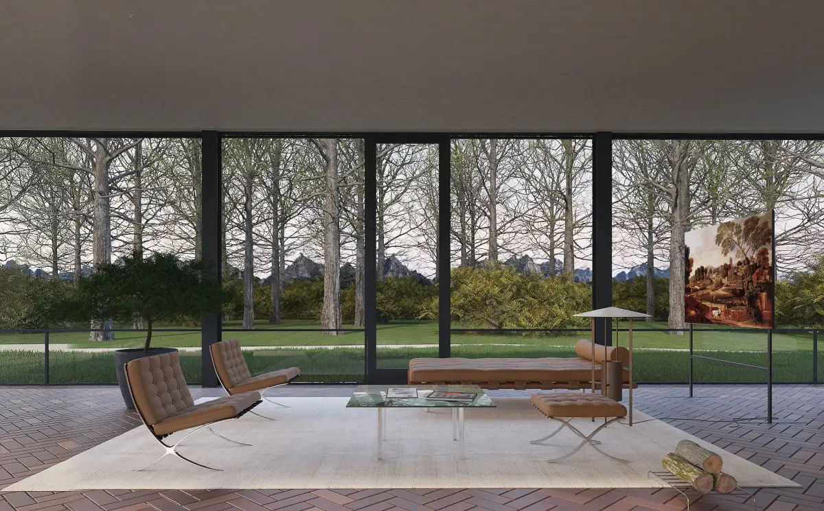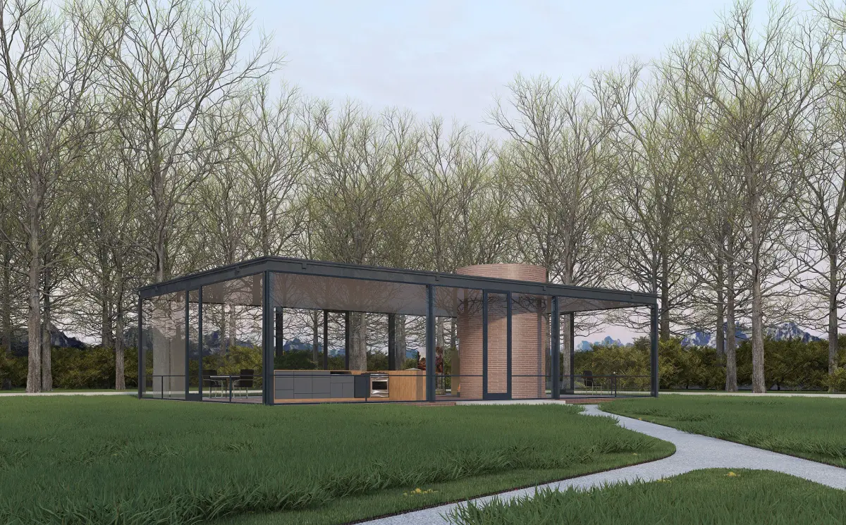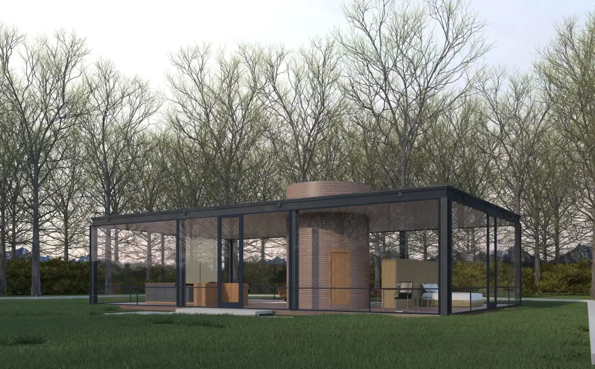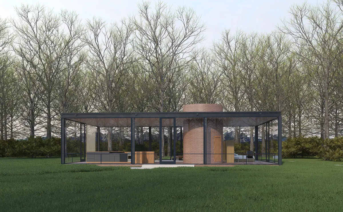 Glass House, designed by Philip Johnson. Modelled by Visuarch.