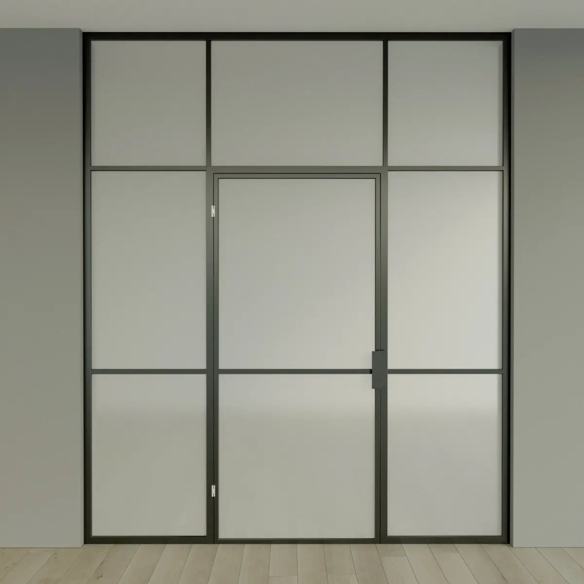 - glass partition. 2 frame materials (black painted metal, old metal), 2 types of glazing (transparent, frosted glass).