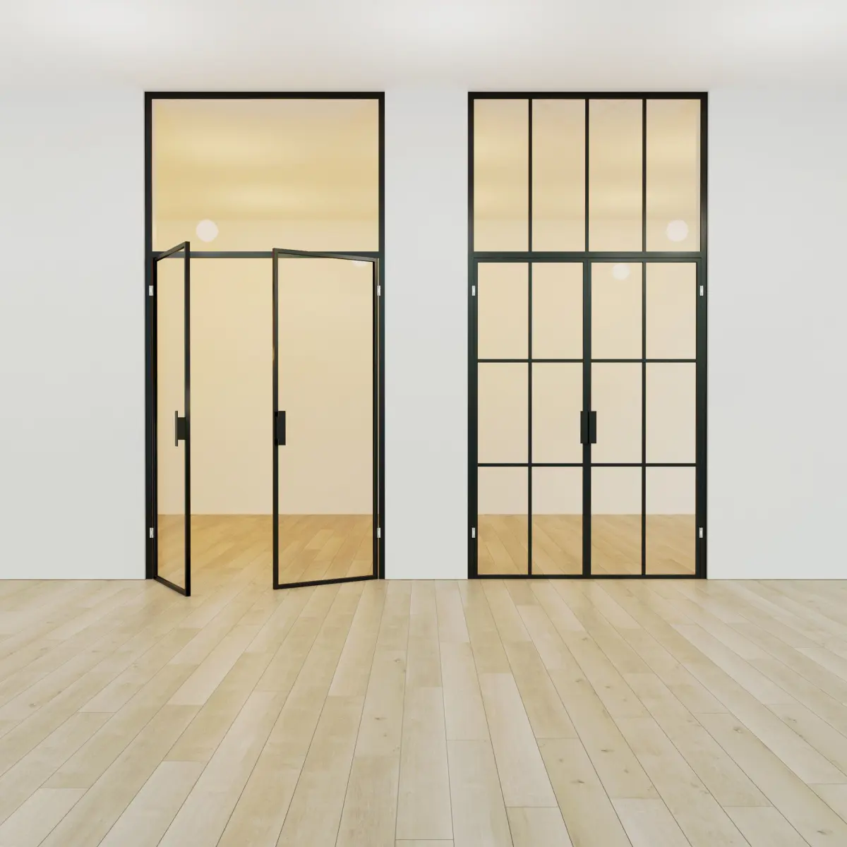 - glass partition. black painted metalThe model is light. The design is easy to edit. You can create any profile layout.
