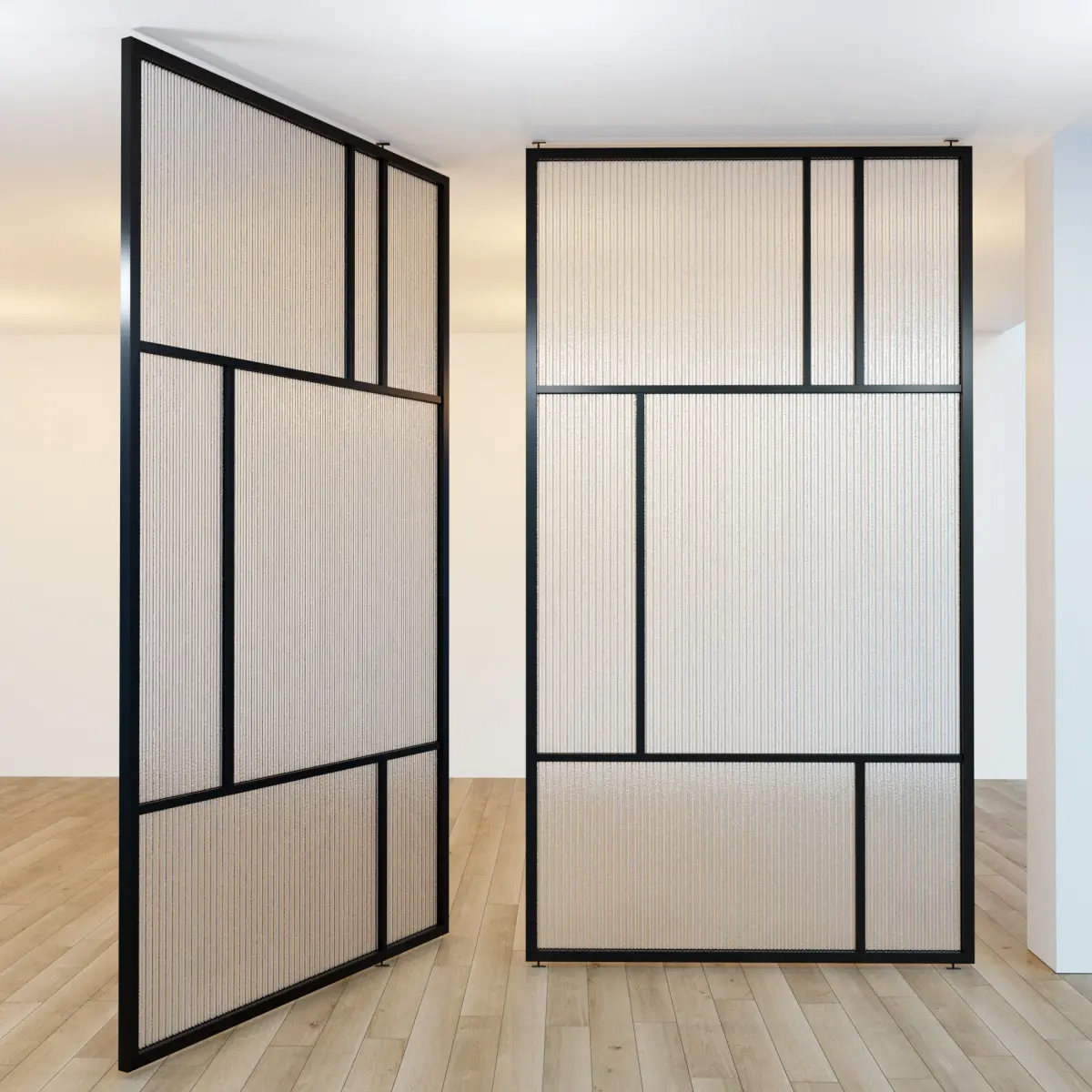 - glass partition. black painted metalThe model is light. The design is easy to edit. You can create any profile layout.