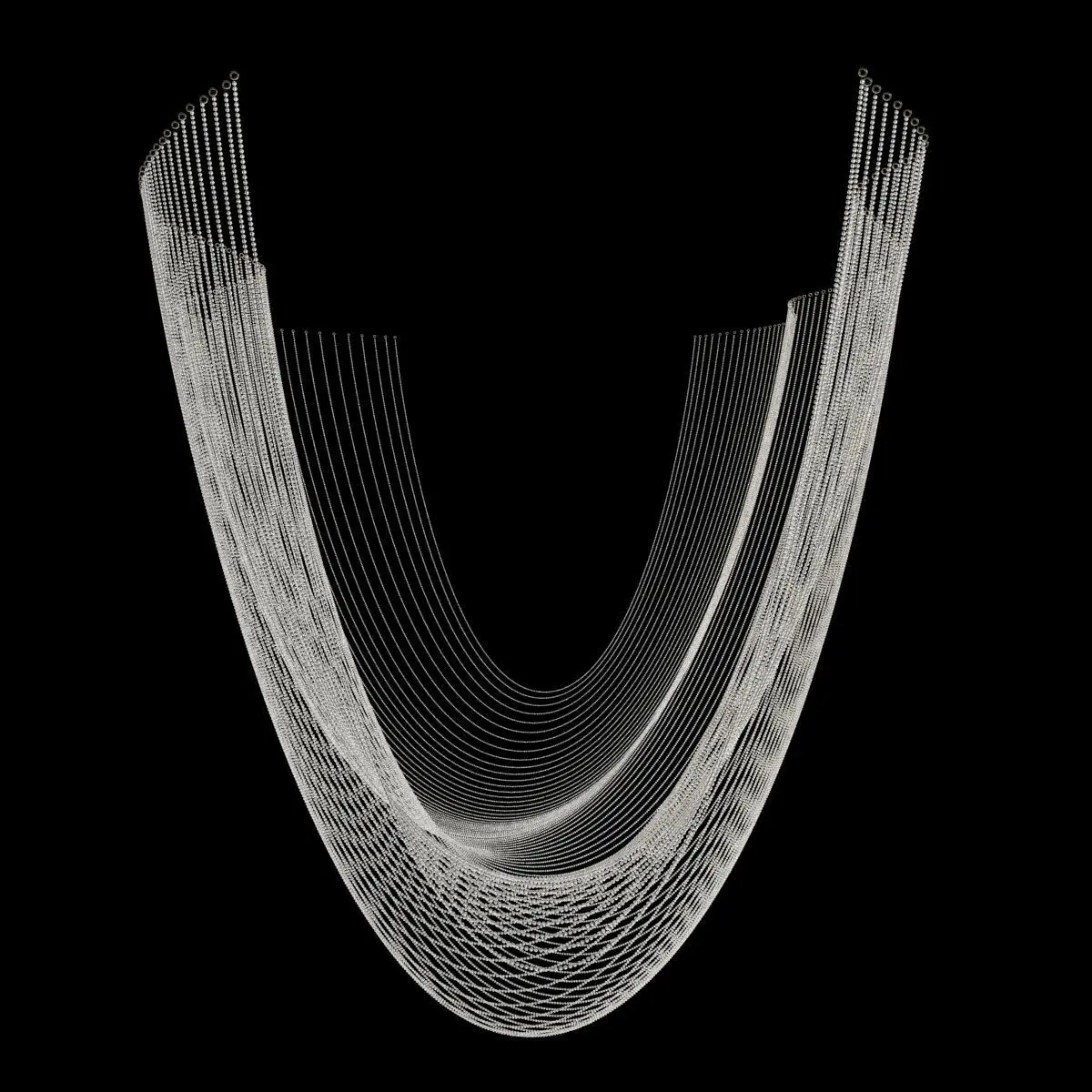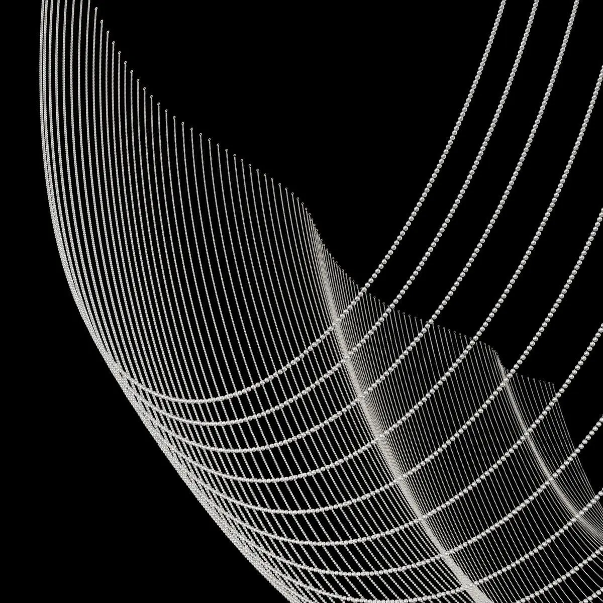 glass pearl ceiling sculpturenickel finished thread with glass pearlsnicel ring bracingpearl size 1 cm diametersculpture size lengh 645 cm width 350cmheigh 300cm
