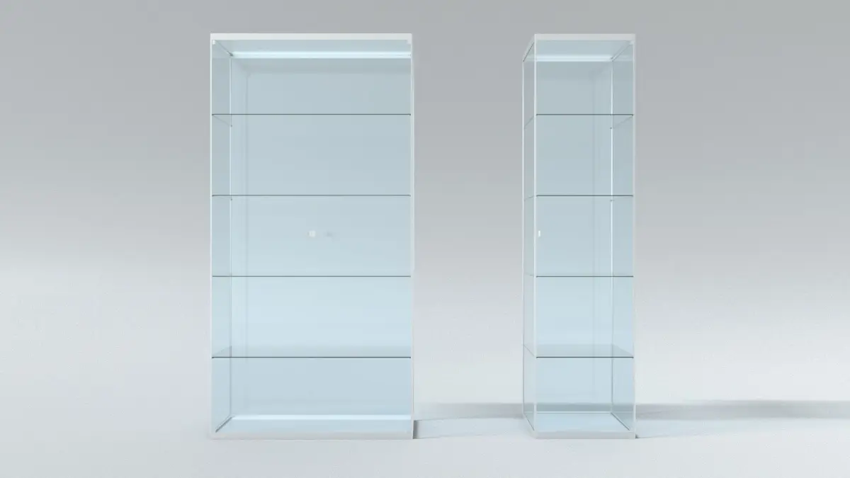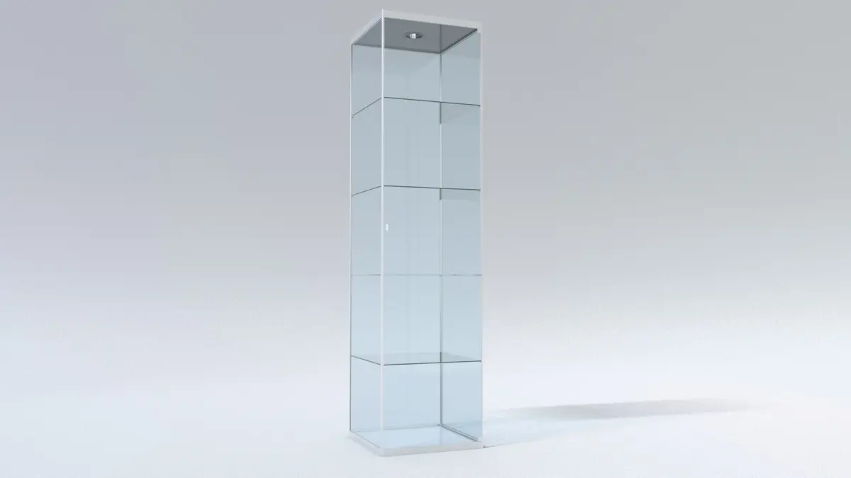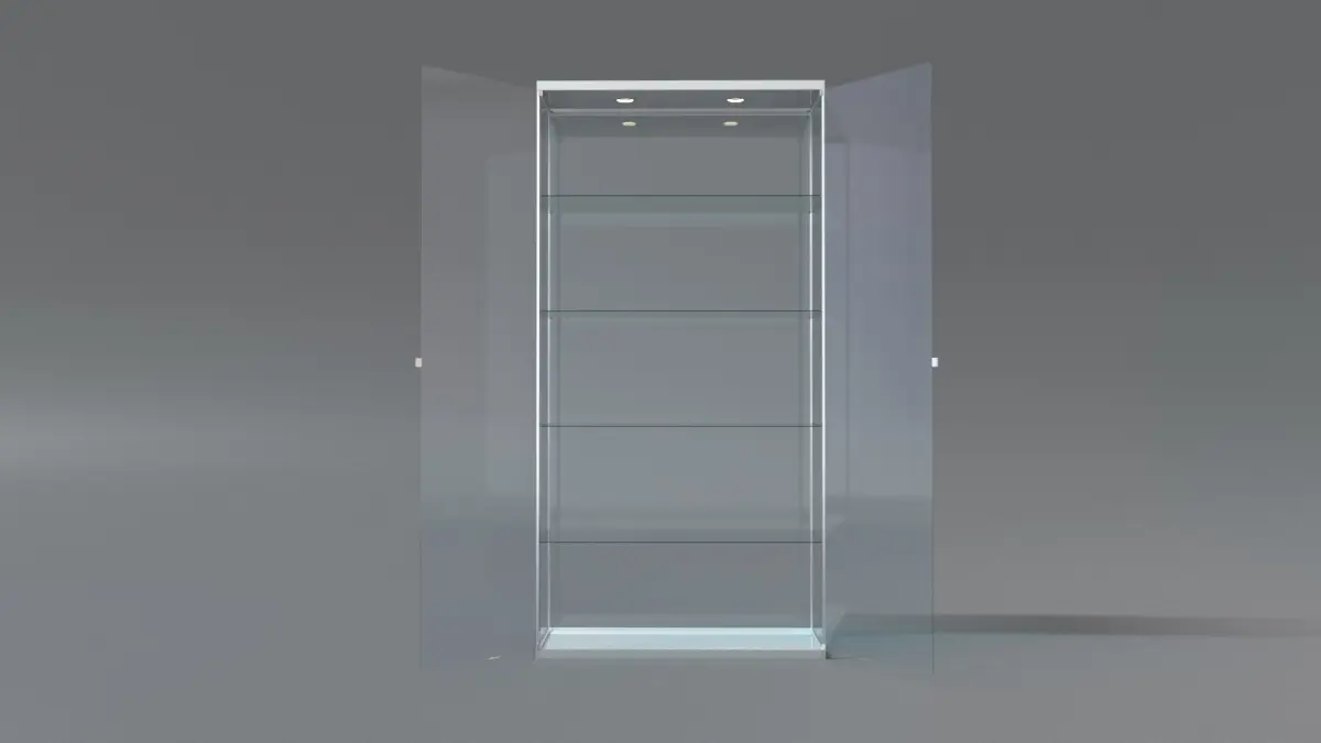 - This is a showcase to be placed at any retail store environment. The final product is made of Metal and the shelves are made of 1/4" thick glass.