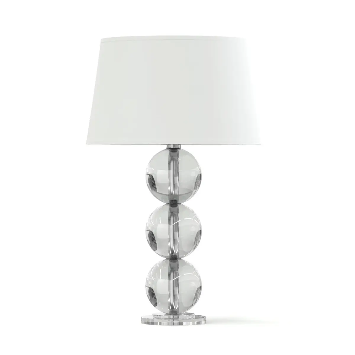Glass table lamp 3d model with white lampshade. Compatible with 3ds max 2010 (V-Ray, Mental Ray, Corona) or higher, Cinema 4D R15 (V-Ray, Advanced Renderer), Unreal Engine, FBX and OBJ.