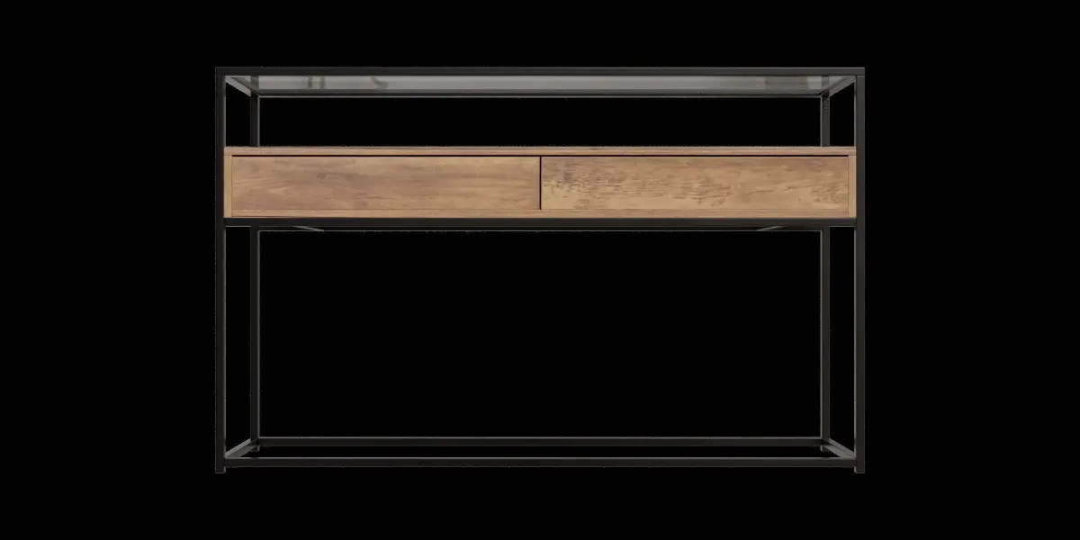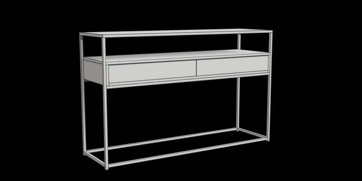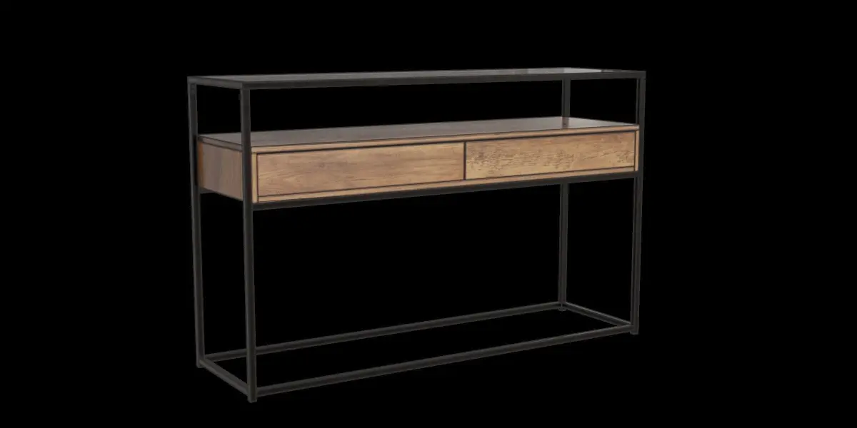This model is a console table with glass top and 2 drawersIt's suitable for decoration in your living/kitchen roomThe file consists of blend file format with 4k resolution baked textures:_ Base color_ Metalness_ Roughness_ Normal