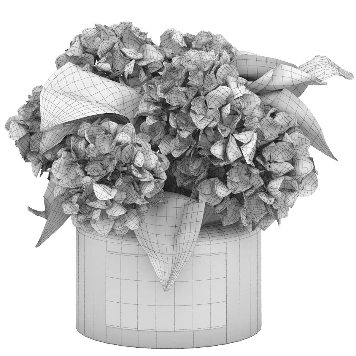 glass vase of white hydrangea flowersbouquet of hydrangeadescription FORMATPlatform: 3dsMax 2015 + obj,Render: Vray + coronasize: 68,2 MBpolys : 547303verts : 576003Dimensionsx : 36,65 cmy : 34,767 cmz : 32,008 cm