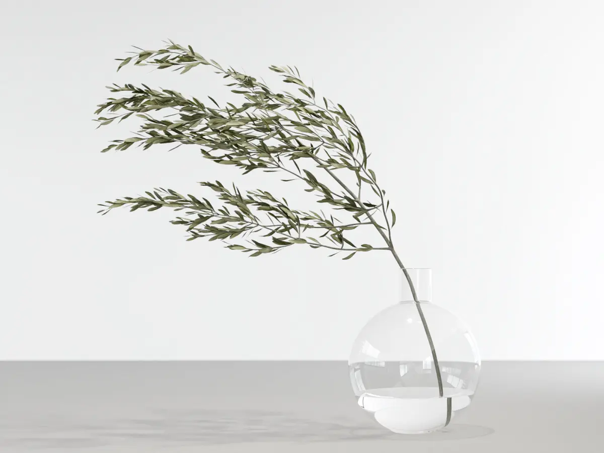 Glass Vase with Olive Branch by N/A | 3d model produced by Design Connected | www.designconnected.com