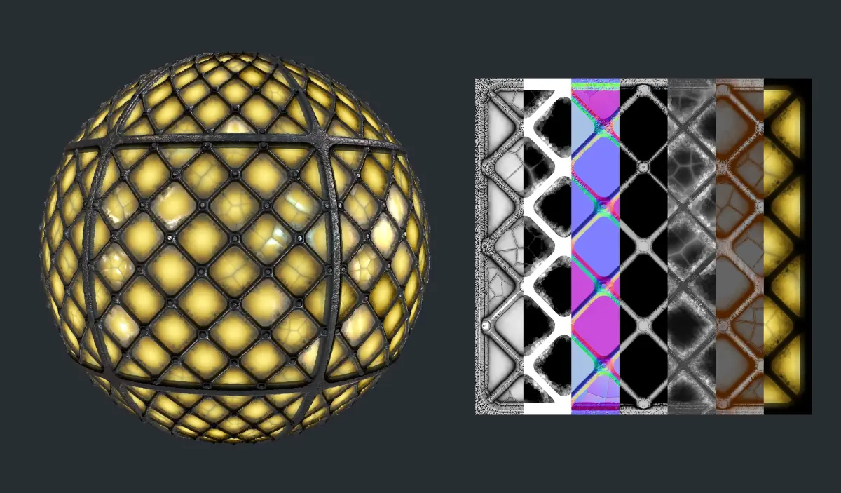 Textures : BaseColor / Normal / Height / Ambient occlusion / Roughness / Metallic / Emissive / Opasity